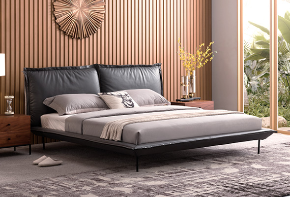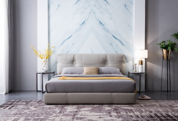 Alder奧爾德設計款床架,整體覆蓋著柔軟而有光澤頂級牛皮,精緻的冷色調呈現經典與高雅,傳達歷久彌新的氣息,綴以富現代感的十字手工縫線設計,採用與飾邊相得益彰的灰,體現一絲不苟的義式匠藝,蘊含永恆的熟悉感。