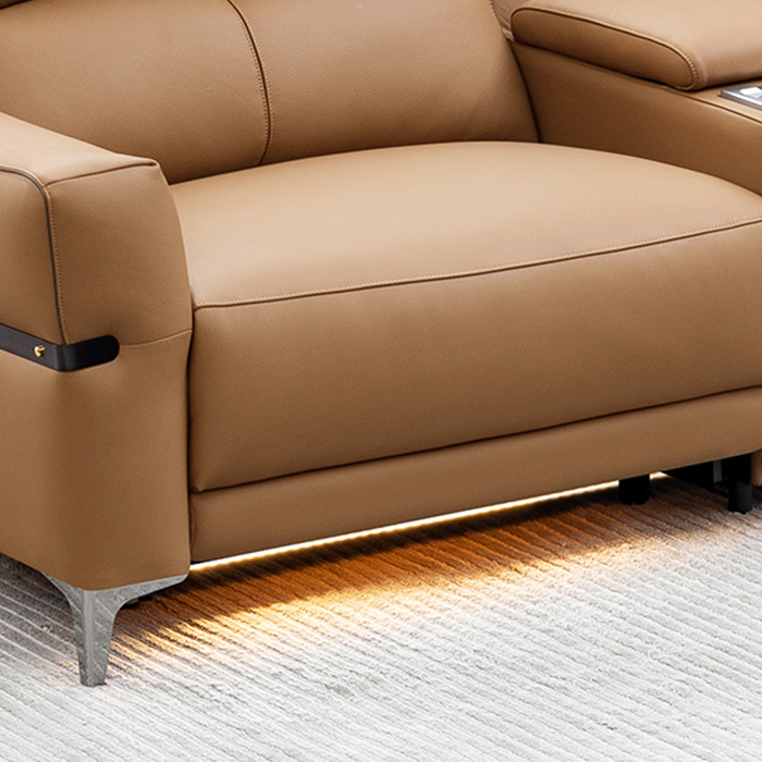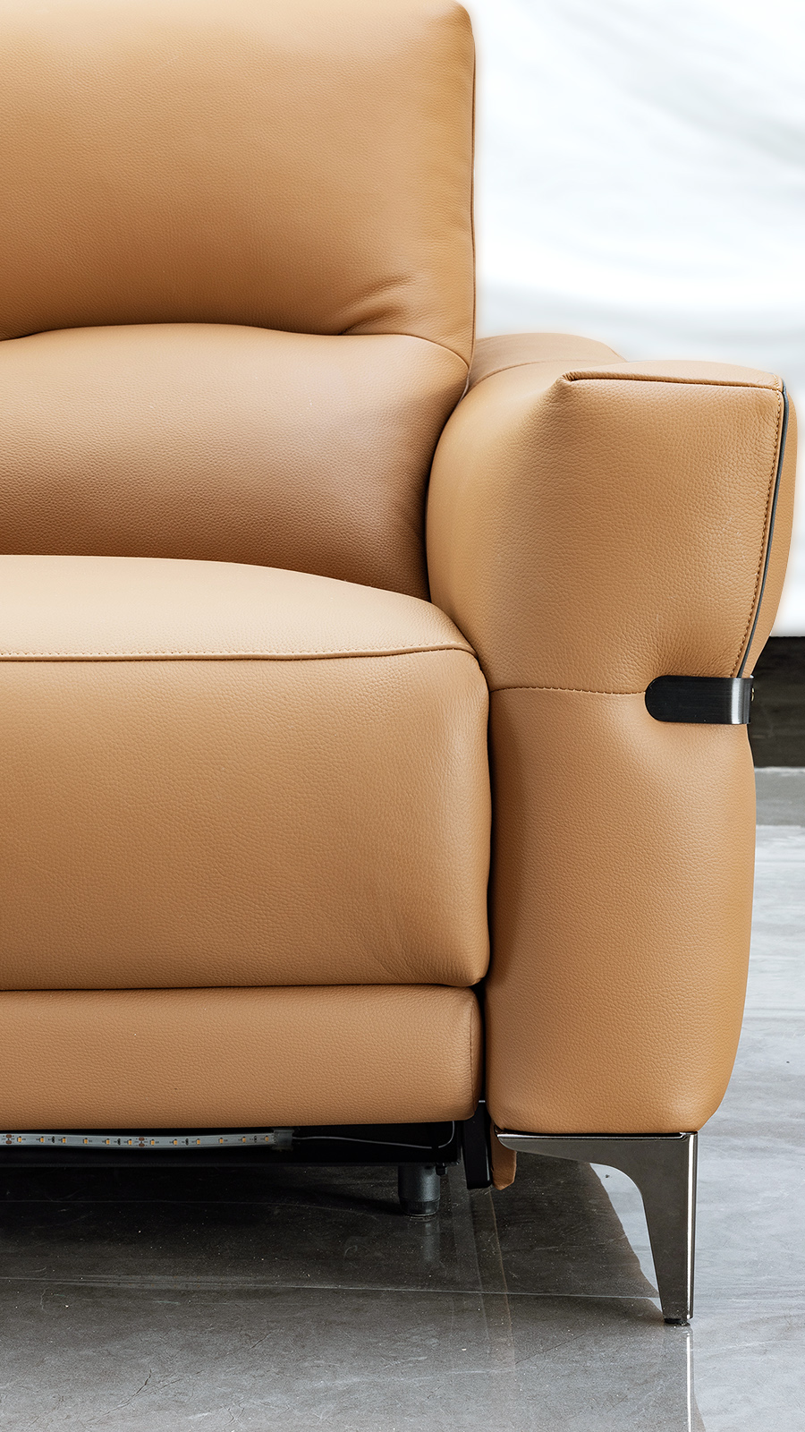 結合現代風格與高科技元素,沙發座椅底部嵌有科技燈條,透過智能控制,柔和的燈光可以作為夜間的導引燈,為沙發周圍創造獨特的視覺效果,為您的居家空間增添時尚氛圍, 呈現出極具前衛感的居家新風潮。