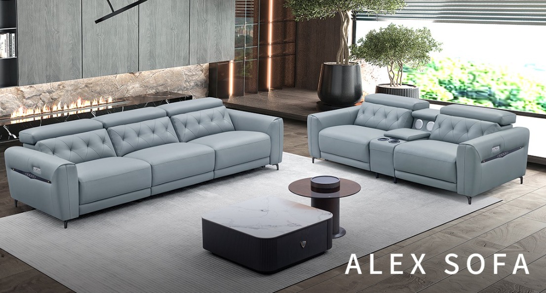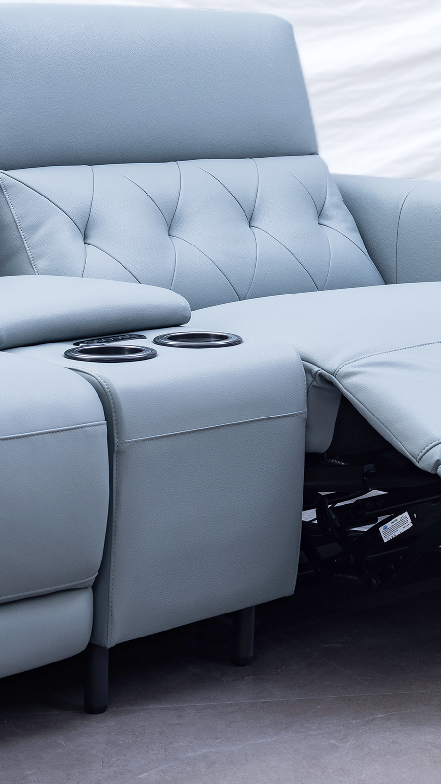 Alex Sofa充滿現代舒適感,非常適合影院室或舒適的休息室。享受全新的重磅產品,配有方便的飲料杯架、電影零食儲存空間、USB 充電孔、藍芽喇叭音樂無限暢聽,專為喜歡在沙發上度過時光的休閒朋友們而設計。