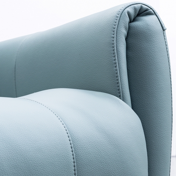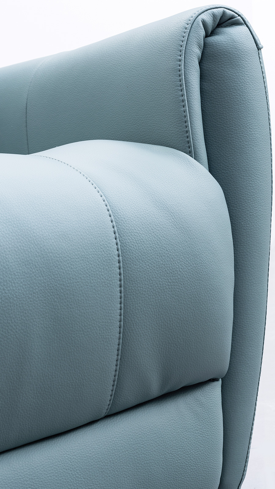 優雅的扶手流線型設計,完美融合舒適與美觀。扶手處的自然曲線讓手臂可以輕鬆垂放,帶來極佳的放鬆感受。精緻的裁縫細節更展現出高品質的手工工藝。