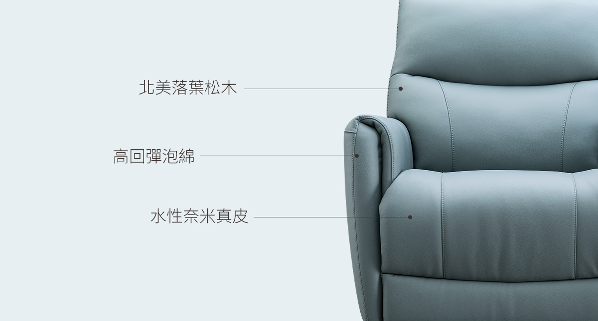 水性奈米真皮擁有真皮的觸感,細膩整齊的紋路,耐磨、耐刮、極強的防水材質,不含甲醛等有害成分,確保居家健康安全。透過創新技術,水性奈米真皮不僅延長皮革的使用壽命,更能滿足喜愛真皮觸感的消費者需求。尤其適合家中有養寵物的朋友或是有學齡前的孩童,這種材質的家具商品在耐用性、觸感舒適度以及環保特性方面都表現卓越。水性真皮/牛皮無疑是未來家具市場中的新時尚,提供一個健康、環保且高品質的選擇。