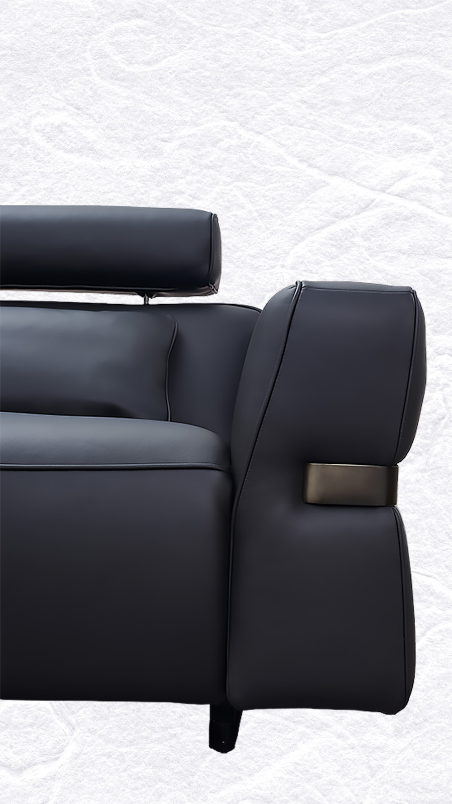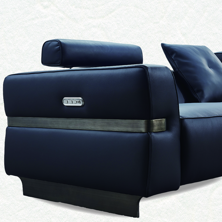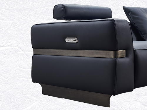 扶手側邊以一體成型金屬碳素鋼飾條設計,讓整體外觀不沉悶,流露出其高端輕奢感。