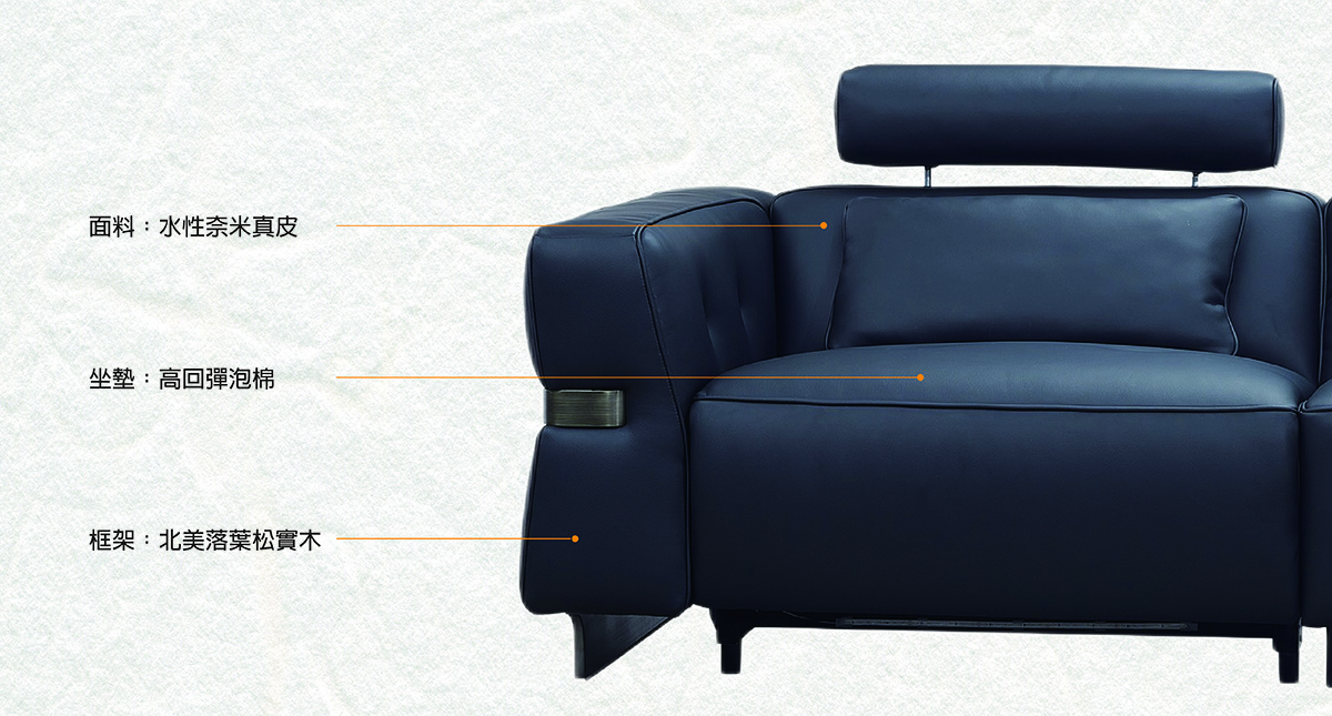 水性奈米真皮擁有真皮的觸感,細膩整齊的紋路,耐磨、耐刮、極強的防水材質,不含甲醛等有害成分,確保居家健康安全。透過創新技術,水性奈米真皮不僅延長皮革的使用壽命,更能滿足喜愛真皮觸感的消費者需求。尤其適合家中有養寵物的朋友或是有學齡前的孩童,這種材質的家具商品在耐用性、觸感舒適度以及環保特性方面都表現卓越。水性真皮/牛皮無疑是未來家具市場中的新時尚,提供一個健康、環保且高品質的選擇。