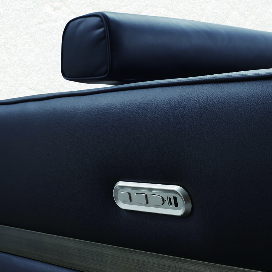 配有一鍵調整傾仰角度,讓舒適度達到極致,搭配高承重力的碳素鋼電動支架,開合順滑,超靜音且不易生鏽,高耐用性和安全性。扶手側設有USB及TYPE C雙插口設計,隨插即用,即時充電。