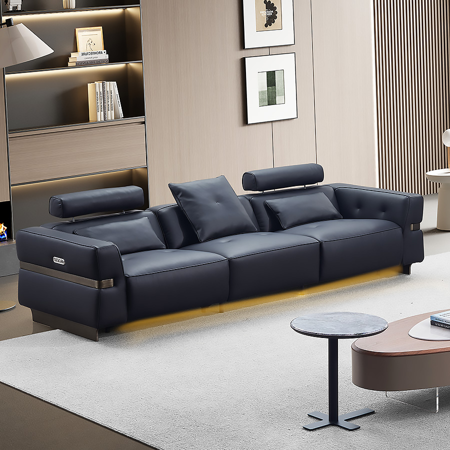 沙發底部崁入科技燈帶,結合科技的便利性,柔和的光線,不僅營造出溫馨的氛圍,更突顯獨有的現代感與獨特品味。無論是夜晚的靜謐時光,還是閱讀時的沉浸氛圍,讓科技點亮生活,享受每一刻的詩意時光。