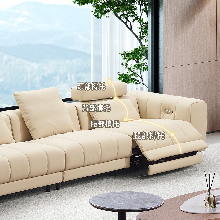 配有一鍵調整傾仰角度,讓舒適度達到極致,搭配高承重力的碳素鋼電動支架,開合順滑,超靜音且不易生鏽,高耐用性和安全性。扶手側設有USB插口設計,隨插即用,即時充電。
