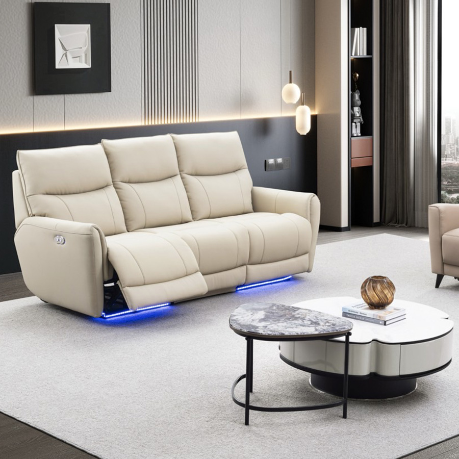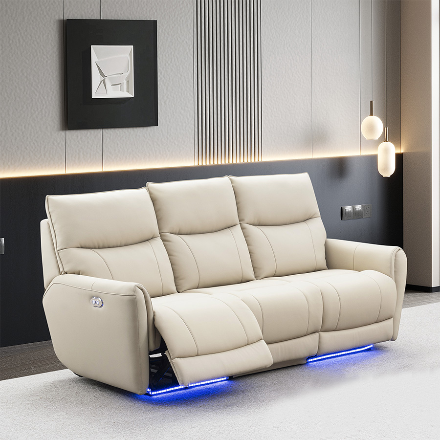 科技與美學的完美共鳴,底部精巧嵌入科技燈帶,描繪出獨特的光影層次,不僅營造出溫馨的氛圍,更突顯出沙發的現代感與獨特品味。