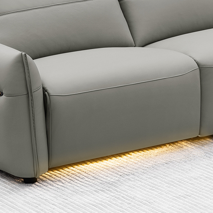 底部設有發光燈條,為居家空間增添一份現代科技感。提升了沙發的視覺效果,還為夜間使用提供柔和的照明,營造出舒適且溫馨的氛圍。