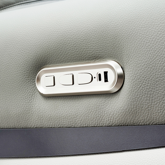 配置簡易操作按鈕,輕鬆就能調整座椅角度,以符合身體最舒適的坐感。扶手側設有USB雙插口設計,隨插即用,即時充電。