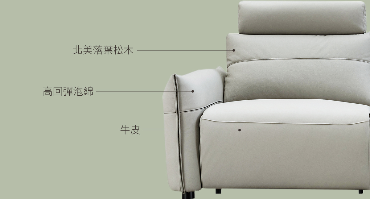 Terrence組合式沙發,匠心打造,不僅擁有多樣化的組合,如三人雙扶手、雙人雙扶手、中椅,均可以依個人需求客製,打造屬於自己的智能沙發,擁有豪華影廳的居家體驗!