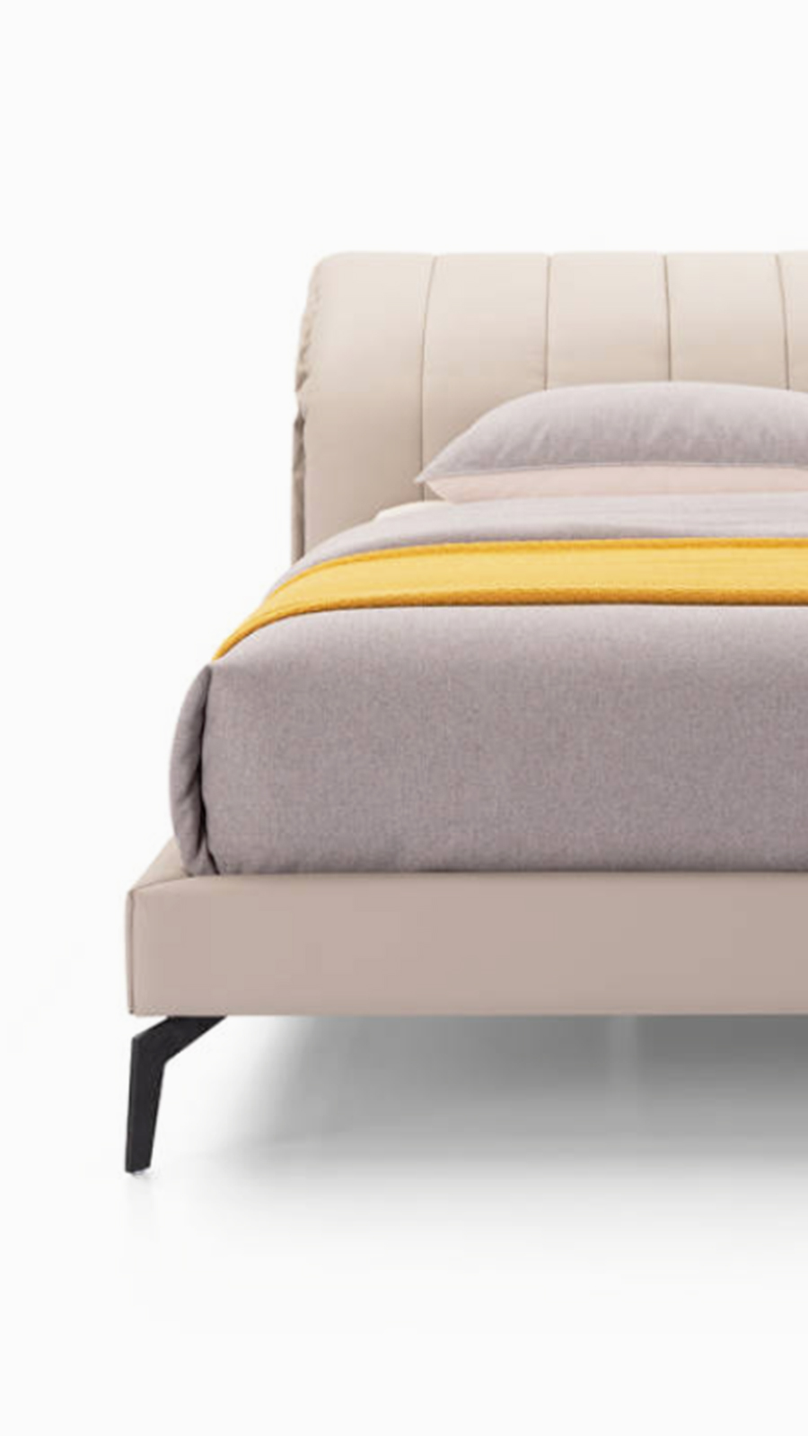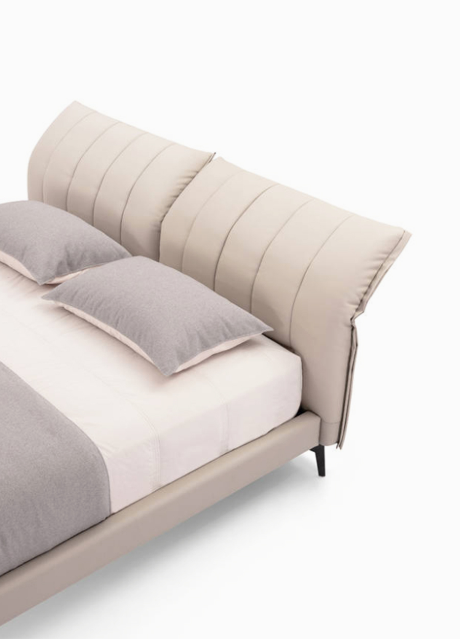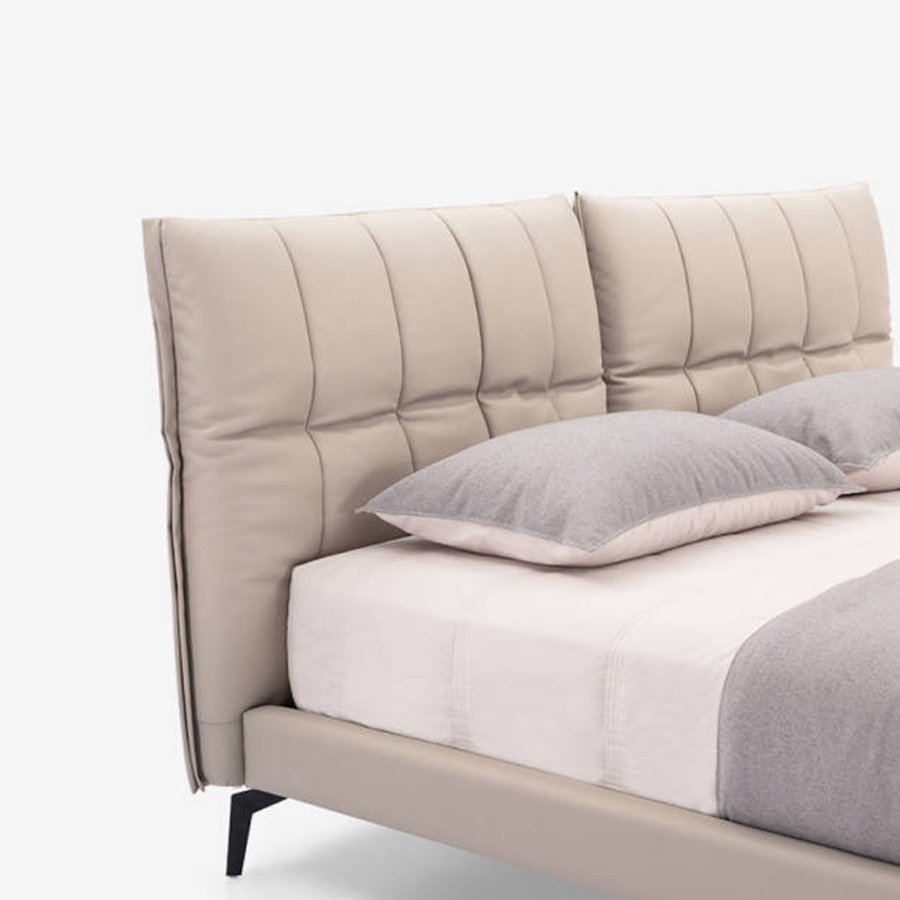 光滑的滾邊床頭板是一件義式極簡的作品