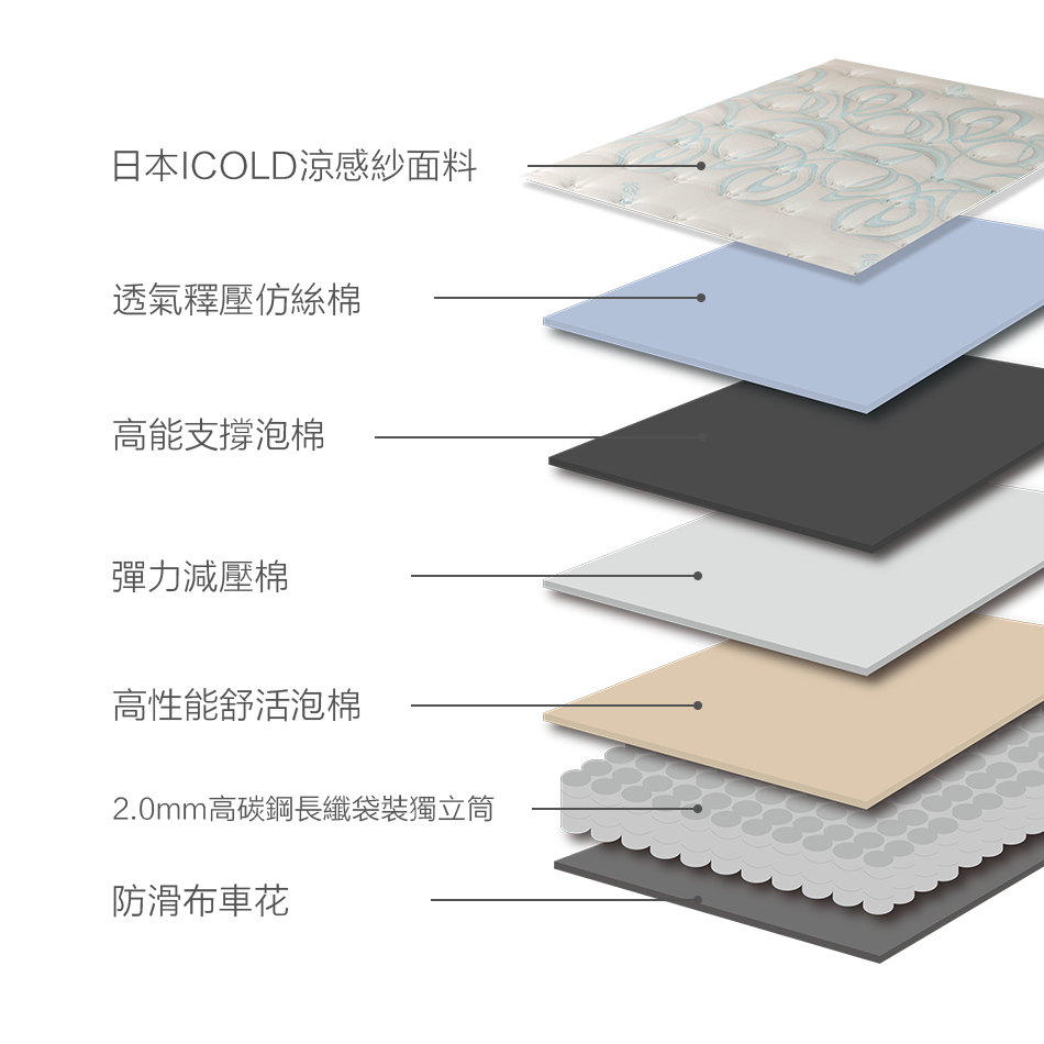 保有獨立統壓縮回彈力,有效維持床墊原有軟硬度。
