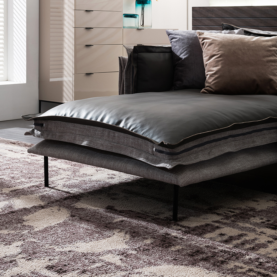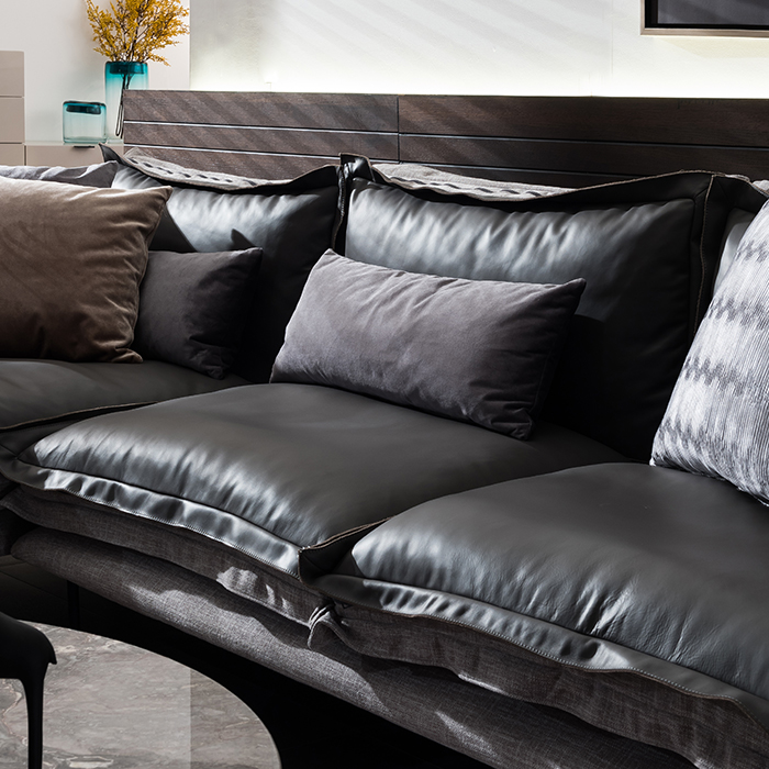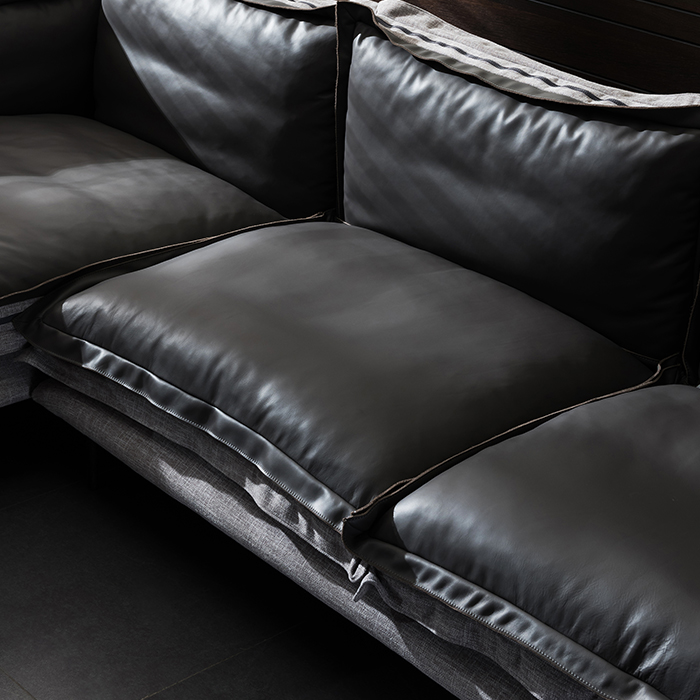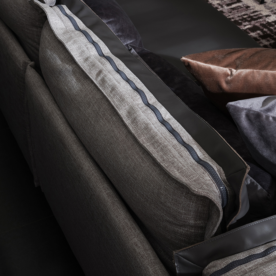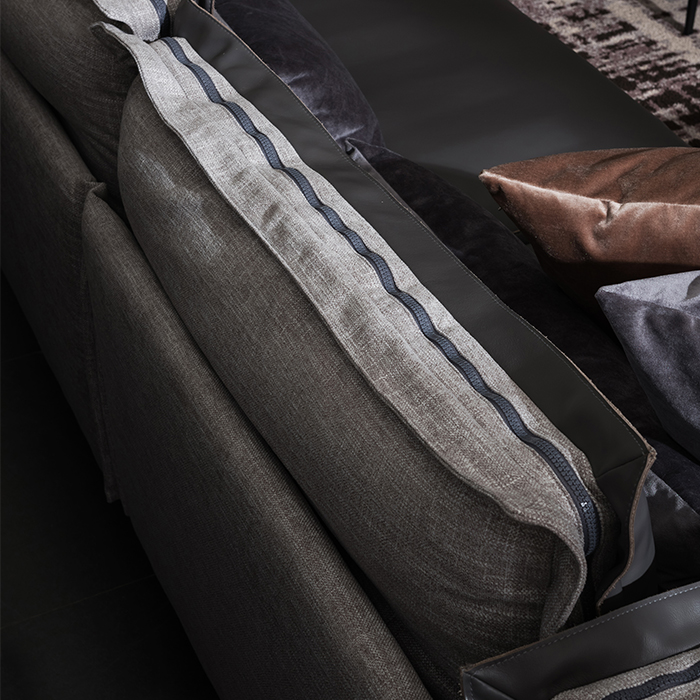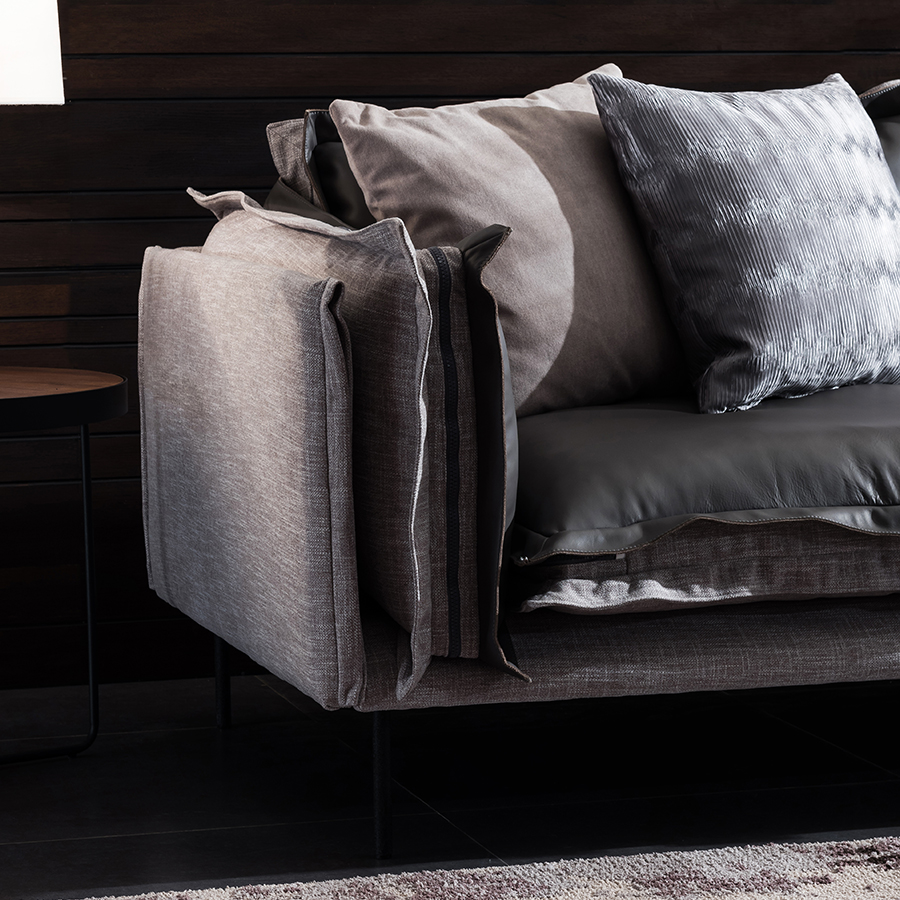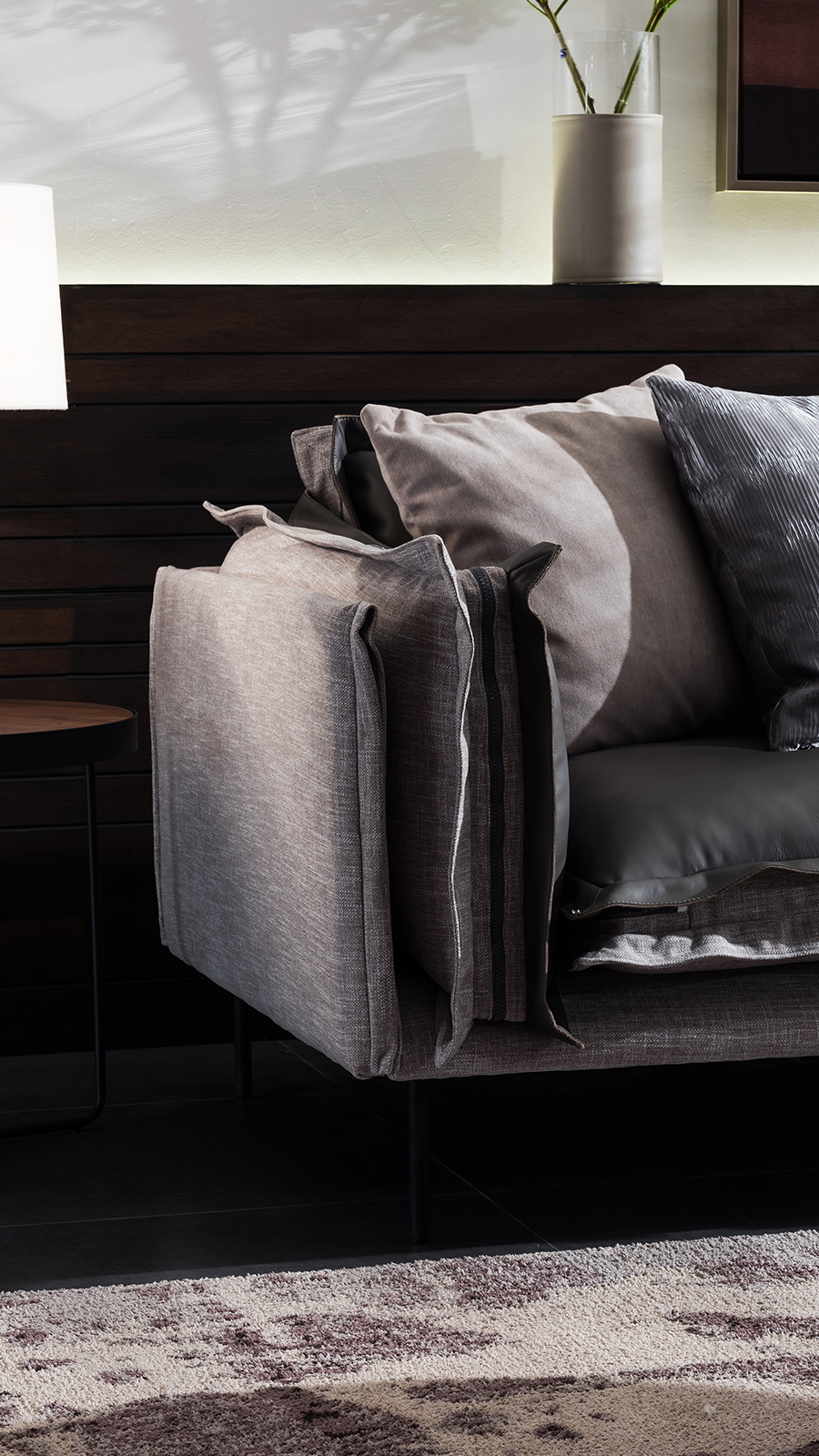 以撞色設計搭巧妙連接牛皮與布藝裝飾,詮釋居家美學品味,