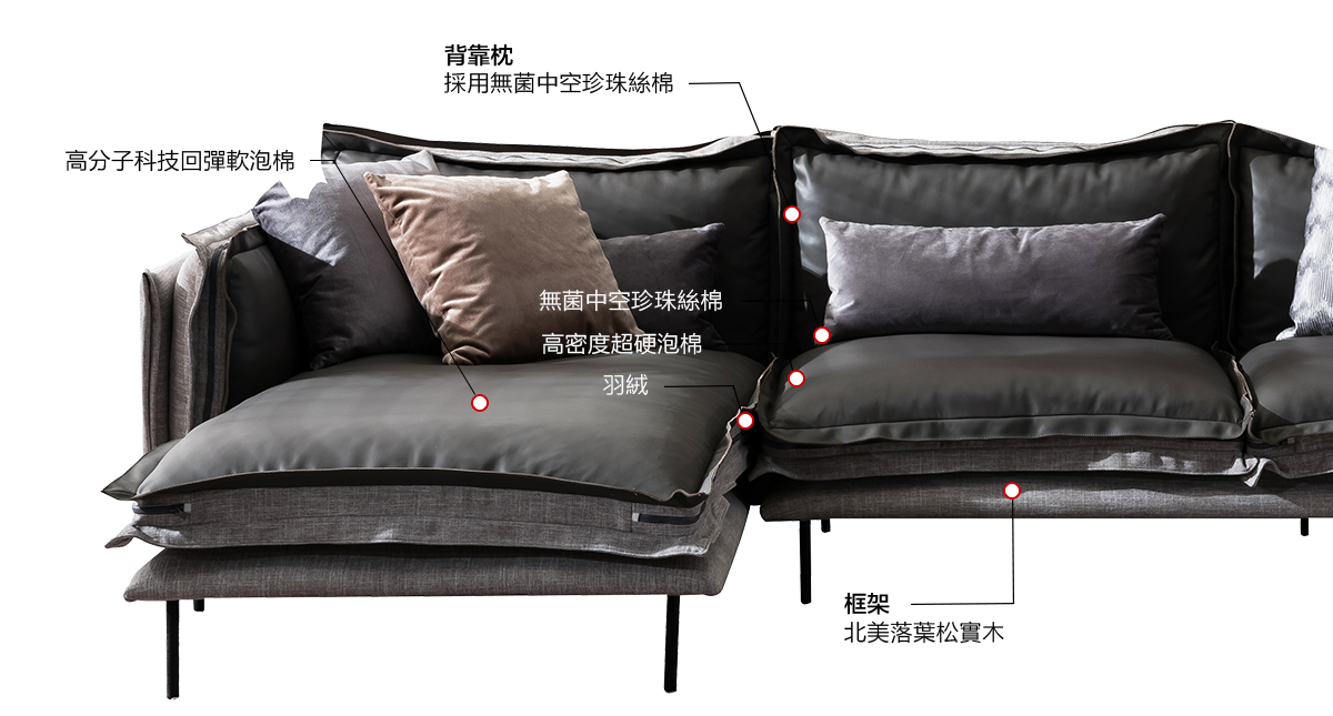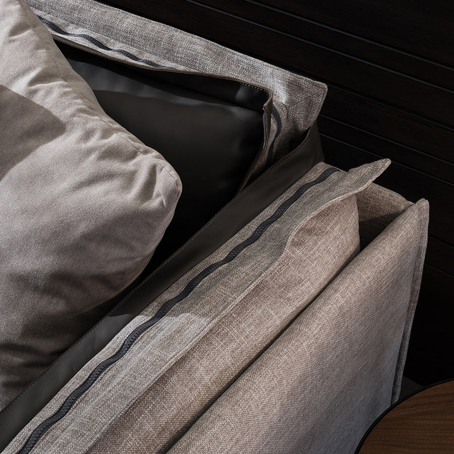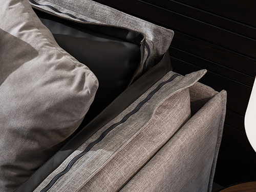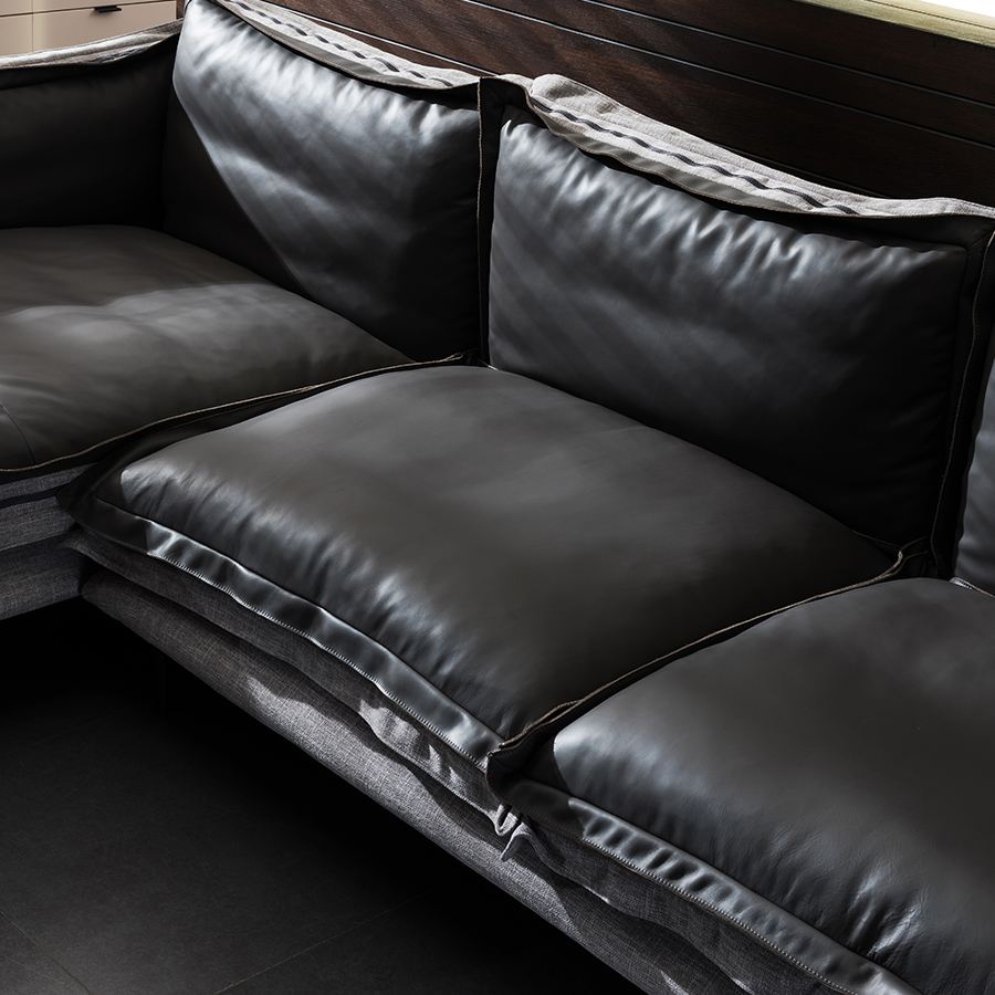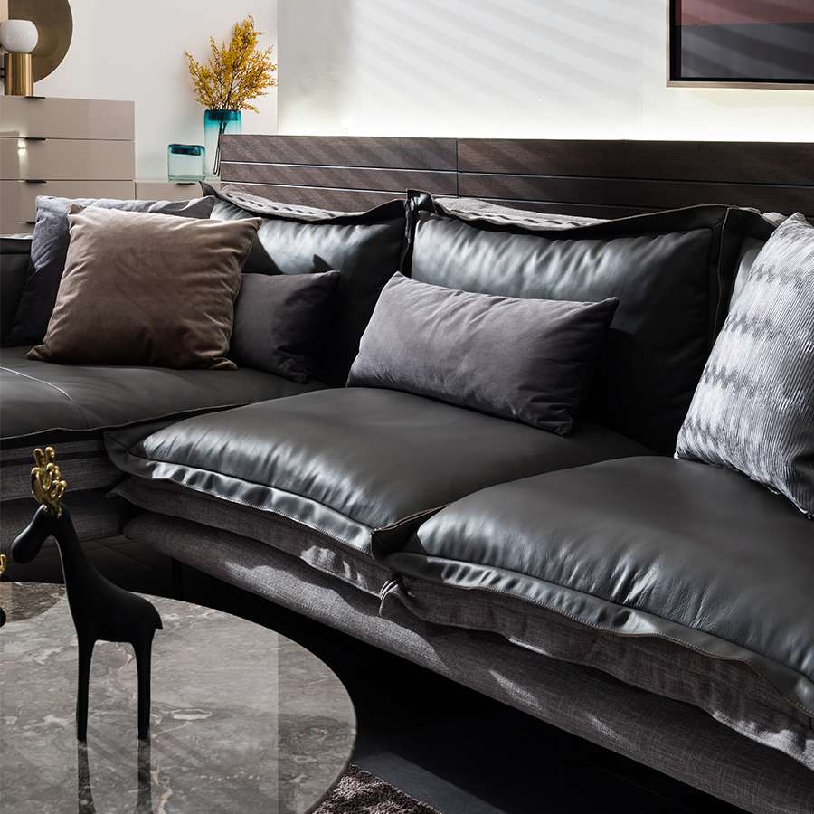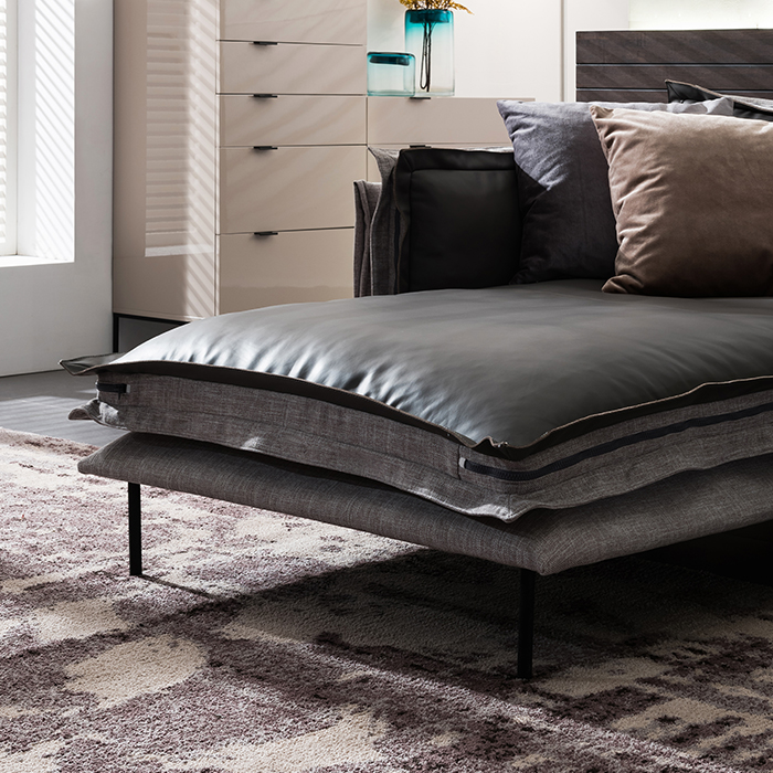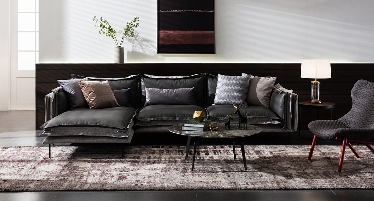 以撞色設計搭巧妙連接牛皮與布藝裝飾,詮釋居家美學品味,