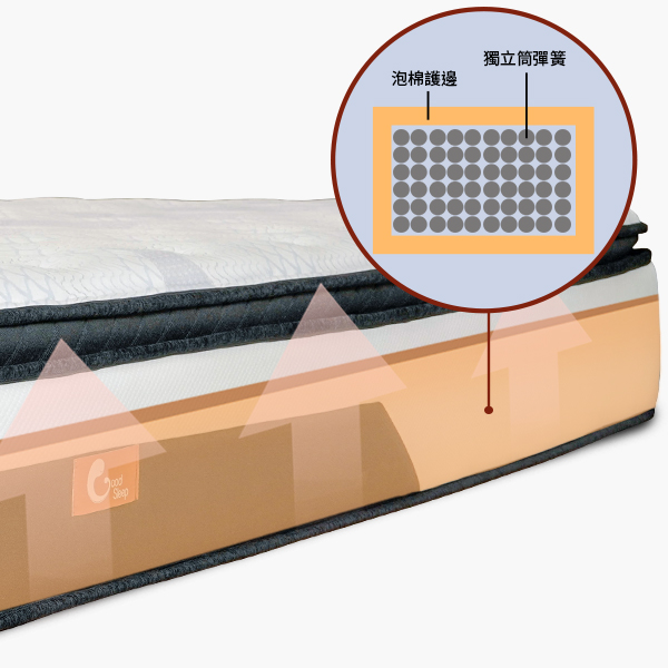 保有獨立統壓縮回彈力,有效維持床墊原有軟硬度。