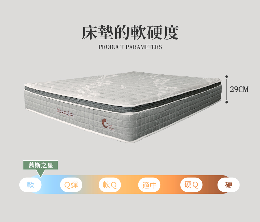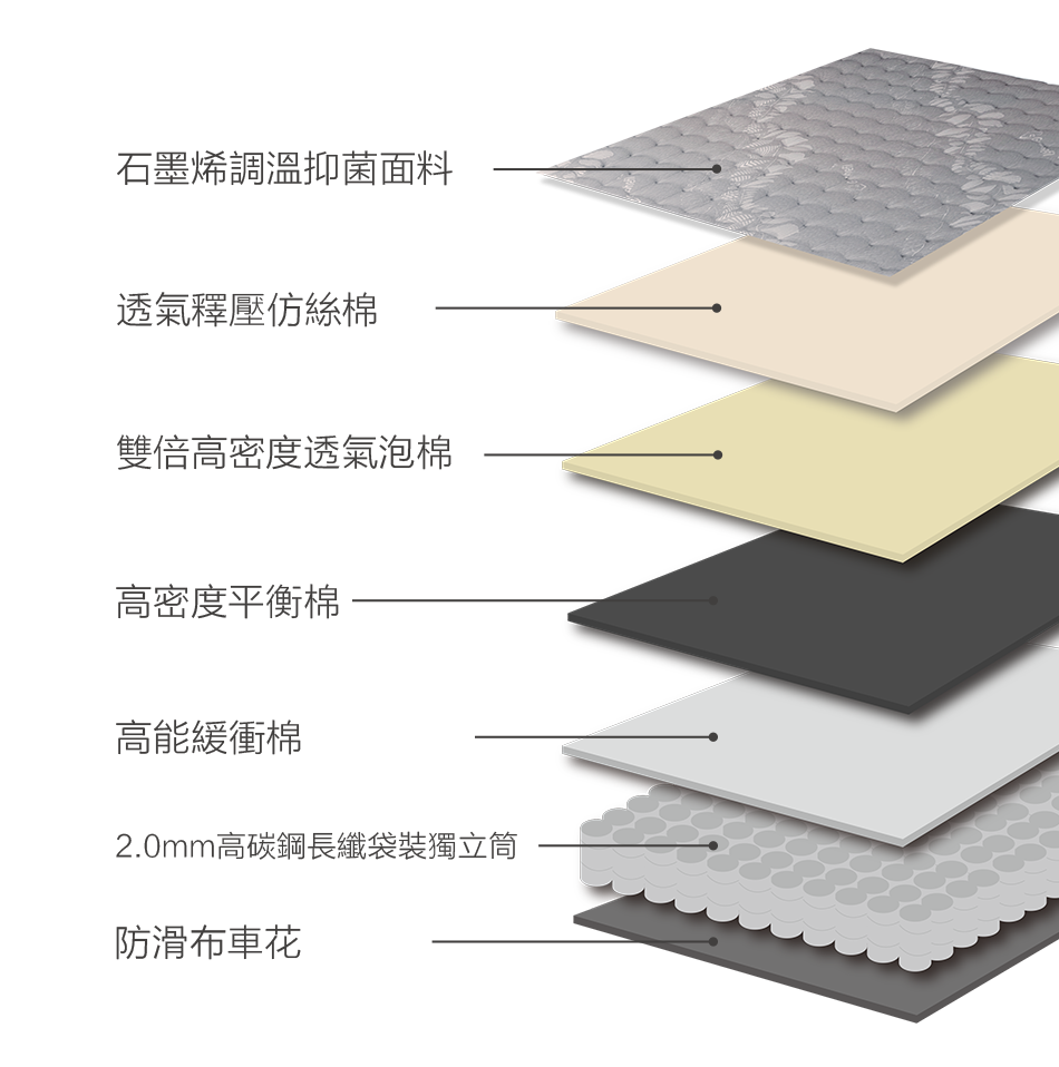 輔助彈簧,既使坐在床邊也能感受床墊撐托力。