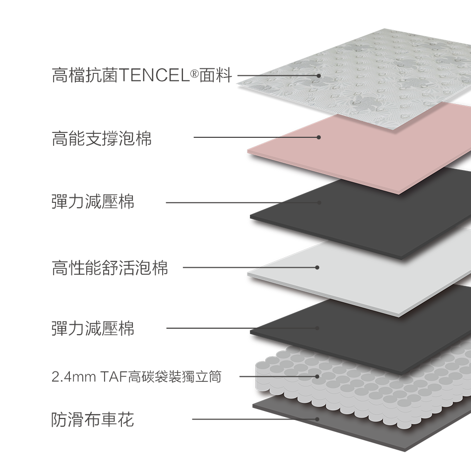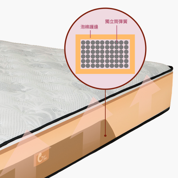 保有獨立統壓縮回彈力,有效維持床墊原有軟硬度。