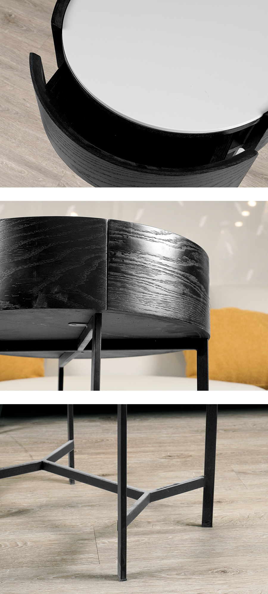 重疊和垂直的部分組成,使這款床頭櫃看起來纖細而