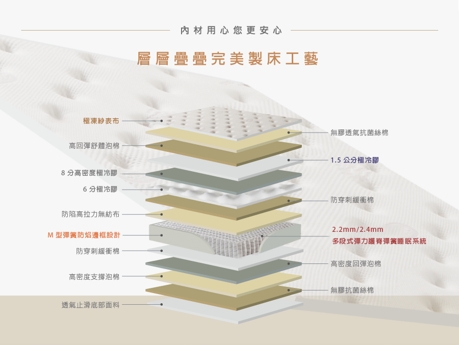 加強撐托使用者脊椎與身體壓力點,打造舒適安心睡眠。