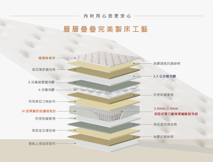 加強撐托使用者脊椎與身體壓力點,打造舒適安心睡眠。