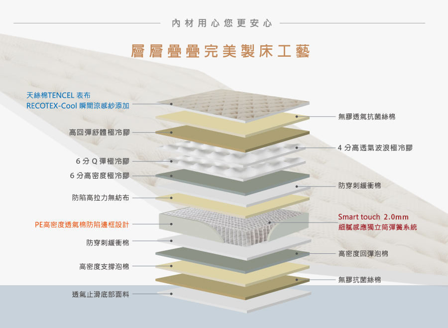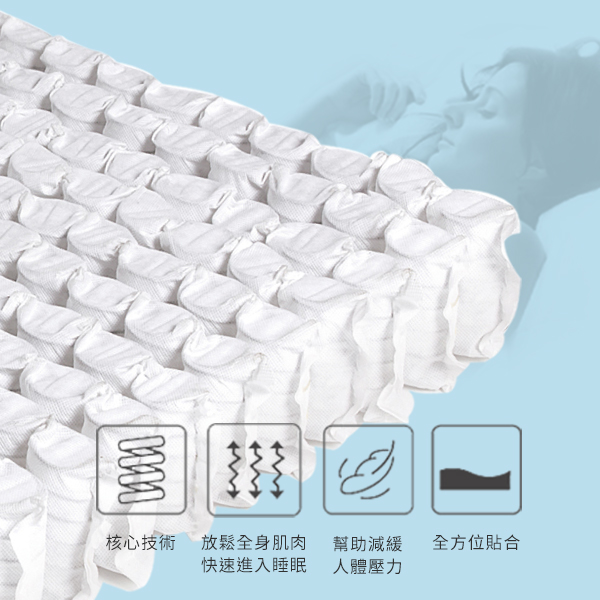2.0mm線徑彈簧,預壓式獨立筒袋,更聰明、細膩地