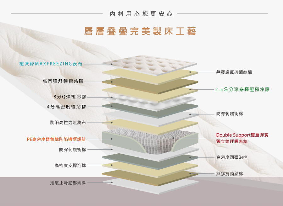 最外側兩排獨立筒彈簧線徑加粗,避免久坐床緣