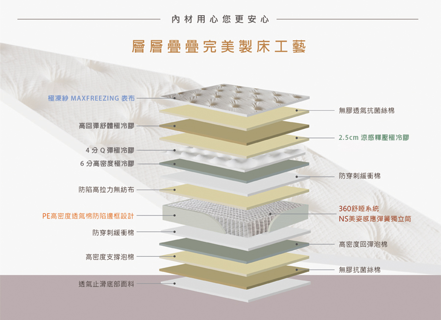 床框四邊為無鋼圈PE高密度透氣棉加強護框