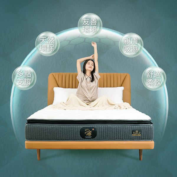 經過多重工序生產的天然乳膠床墊,彈性柔韌性