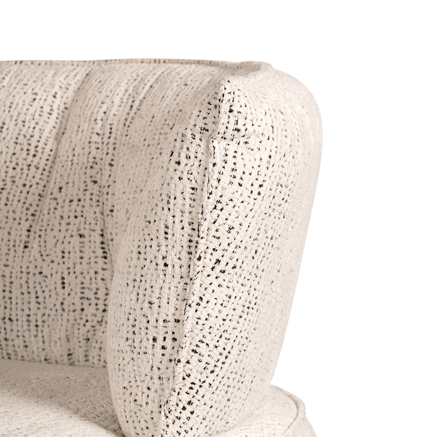 這款扶手椅的特點是寬大的扶手和可傾斜的靠背,