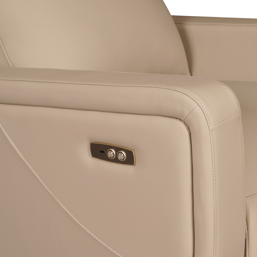 採用奶油皮革,扶手營造出乾淨、優雅的扶手椅。