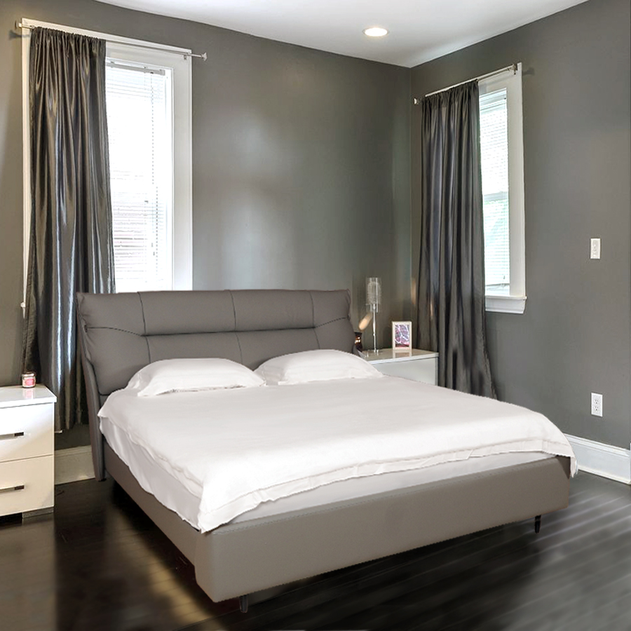 整體顯現俐落帶有溫潤、協調感,床頭板蓬鬆舒適,