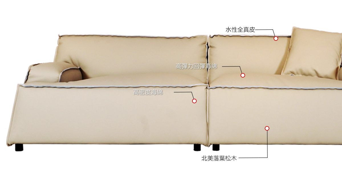 低調簡約的圓腳設計,穩固支撐著整體沙發。