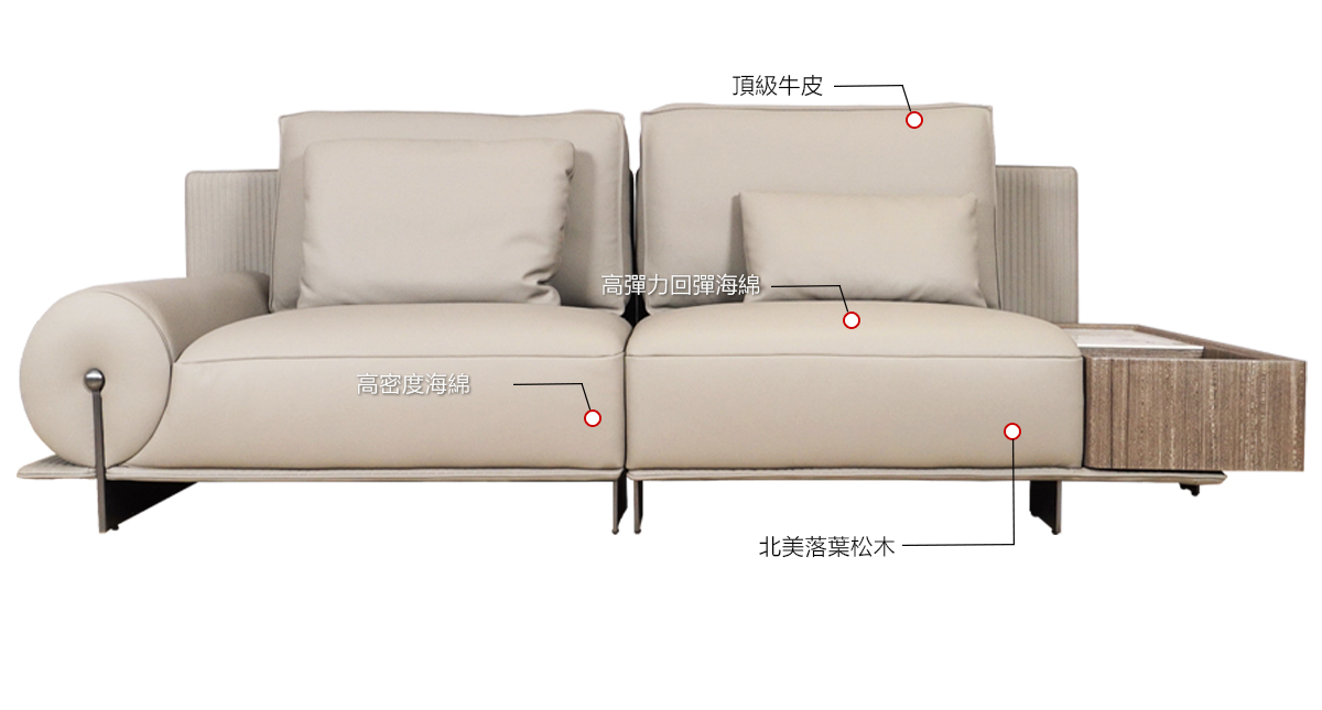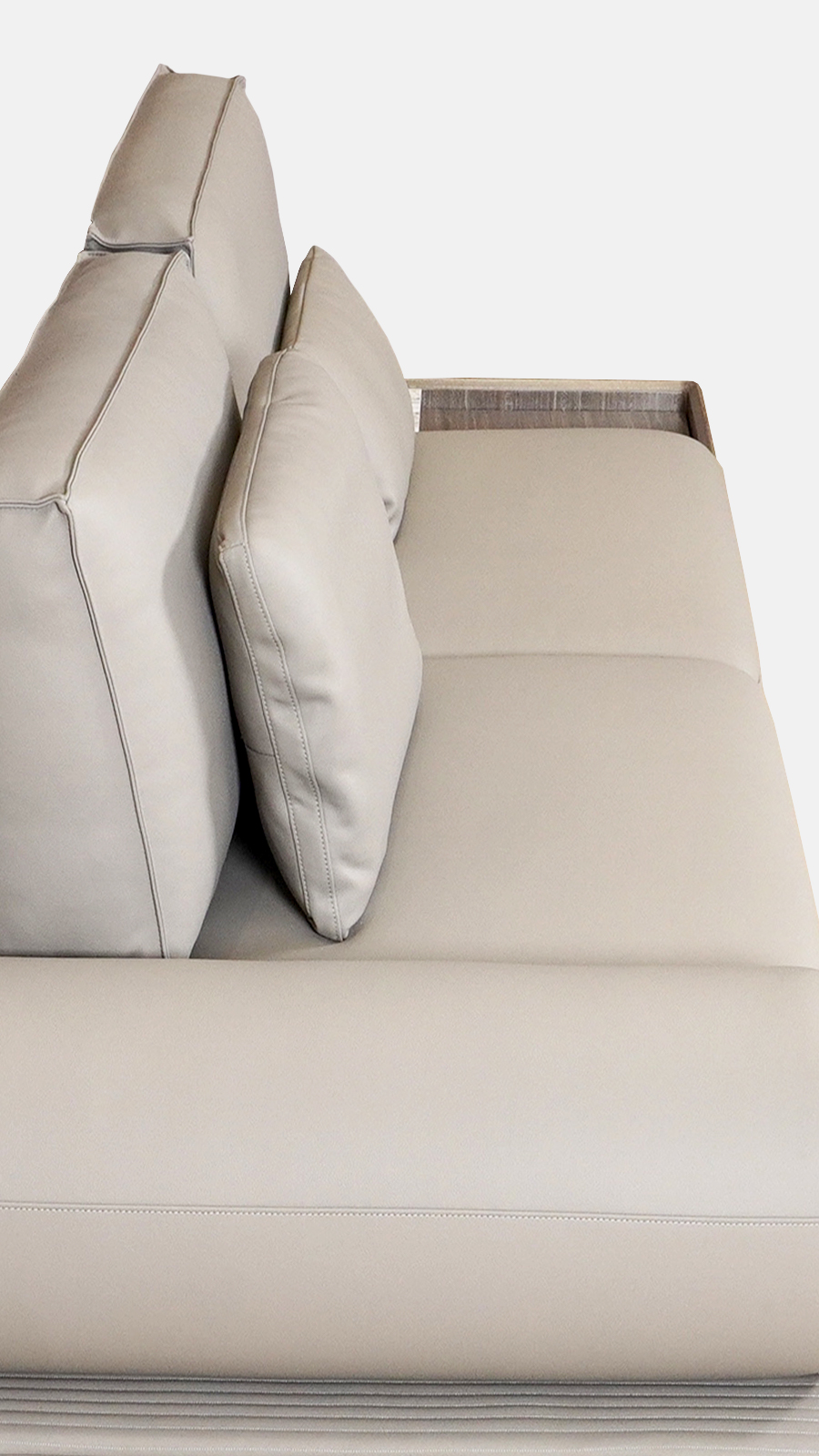精緻設計和令人耳目一新的細節,扶手配有收納式桌面,可作為邊几或咖啡桌使用。