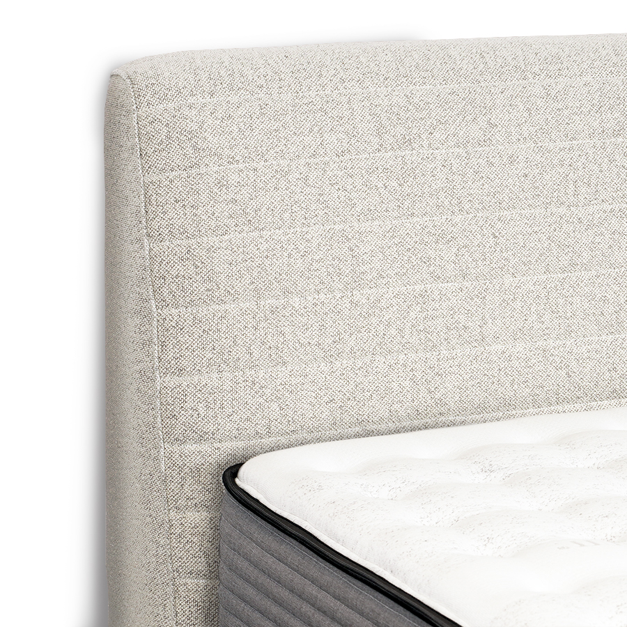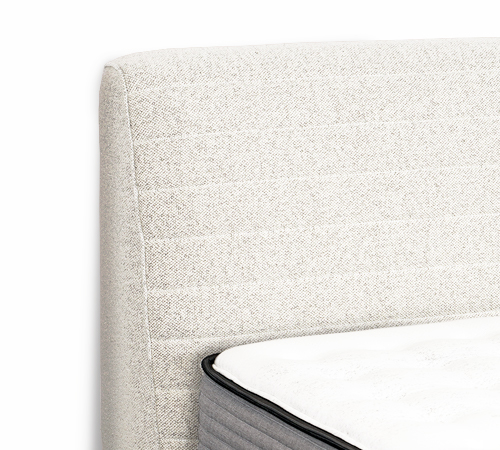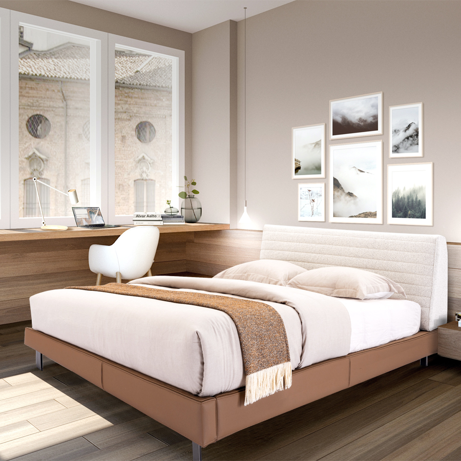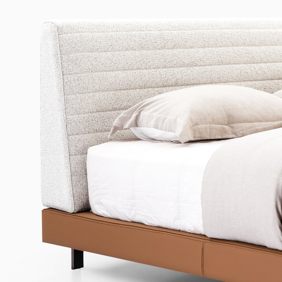 擁有極簡的流線線條與纖長的設計,其動感輕盈的外型、具有時裝風格美學的床頭,精緻橫向的手工縫線細節。