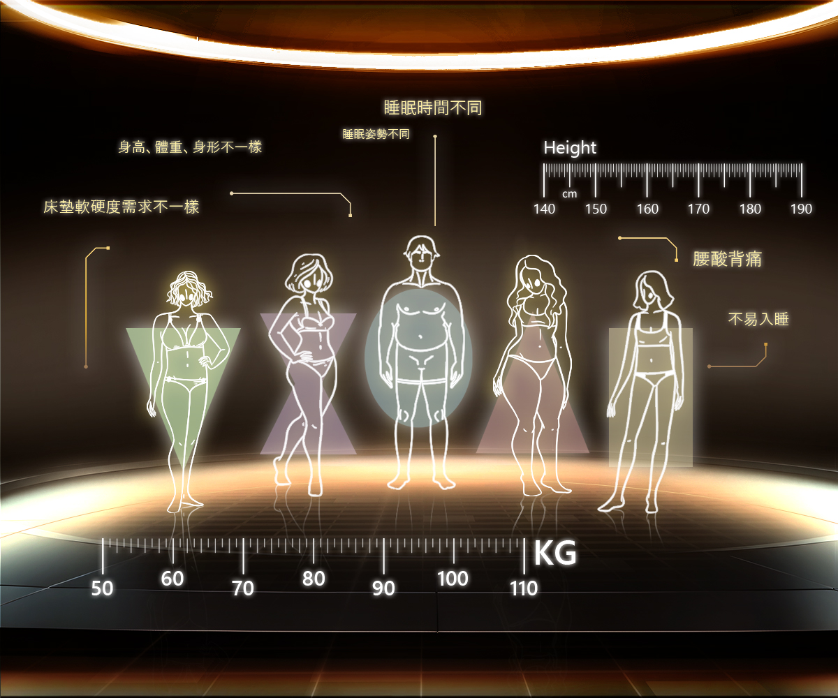 「讓床墊適應不同的個人需求和體型,就讓床墊符合你的需求」