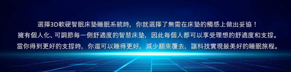 傳統床墊通常使用單一材料,如泡棉、彈簧,這些廣泛被使用的材料難以適應不同體型和睡姿的需求,這導致很多人在使用傳統床墊時感到不適應,甚至影響睡眠品質,3D軟硬智眠床墊通過採用先進的材料和設計,打破傳統床墊的局限性,使得床墊能夠更靈活地適應個體差異,提供更個性化的睡眠體驗,打開睡眠新時代的大門,不僅在於它是一張床,也是個性化、智能科技的象徵,全方位舒適度,更強化使用者對睡眠品質與舒適度的不斷提升的需求,將夜晚轉變為真正的休息和身體恢復時光。