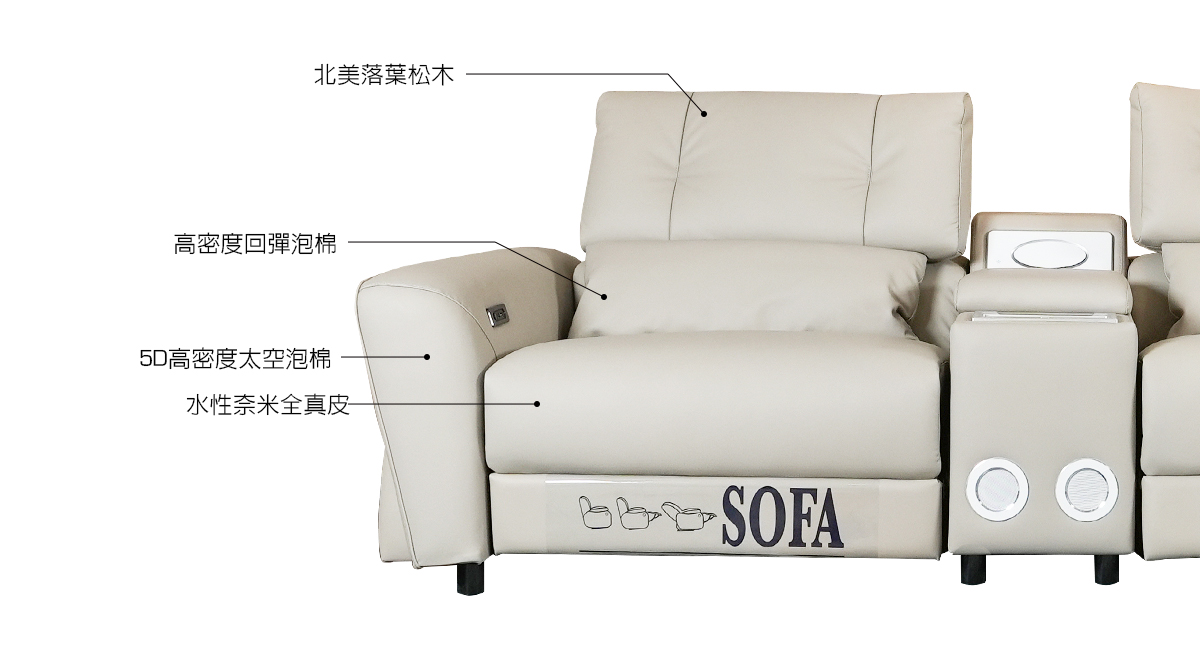 Philo Sofa組合式沙發,匠心打造,不僅擁有多樣化的組合,如三人雙扶手+功能茶几、雙人雙扶手+功能茶几、三人雙扶手、雙人雙扶手、單人雙扶手、中椅,茶几功能包含檯燈、無線充電盤、空氣淨化器&藍芽音箱等全方位多功能設備均可以依個人需求客製,打造屬於自己的智能沙發,擁有豪華影廳的居家體驗!