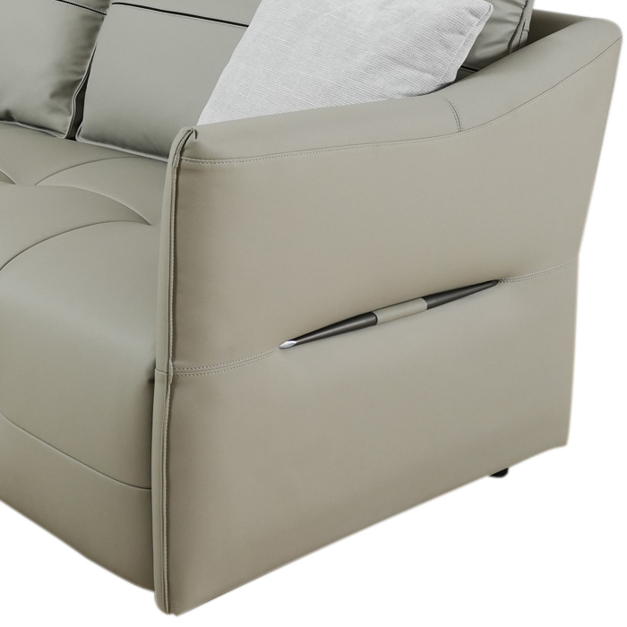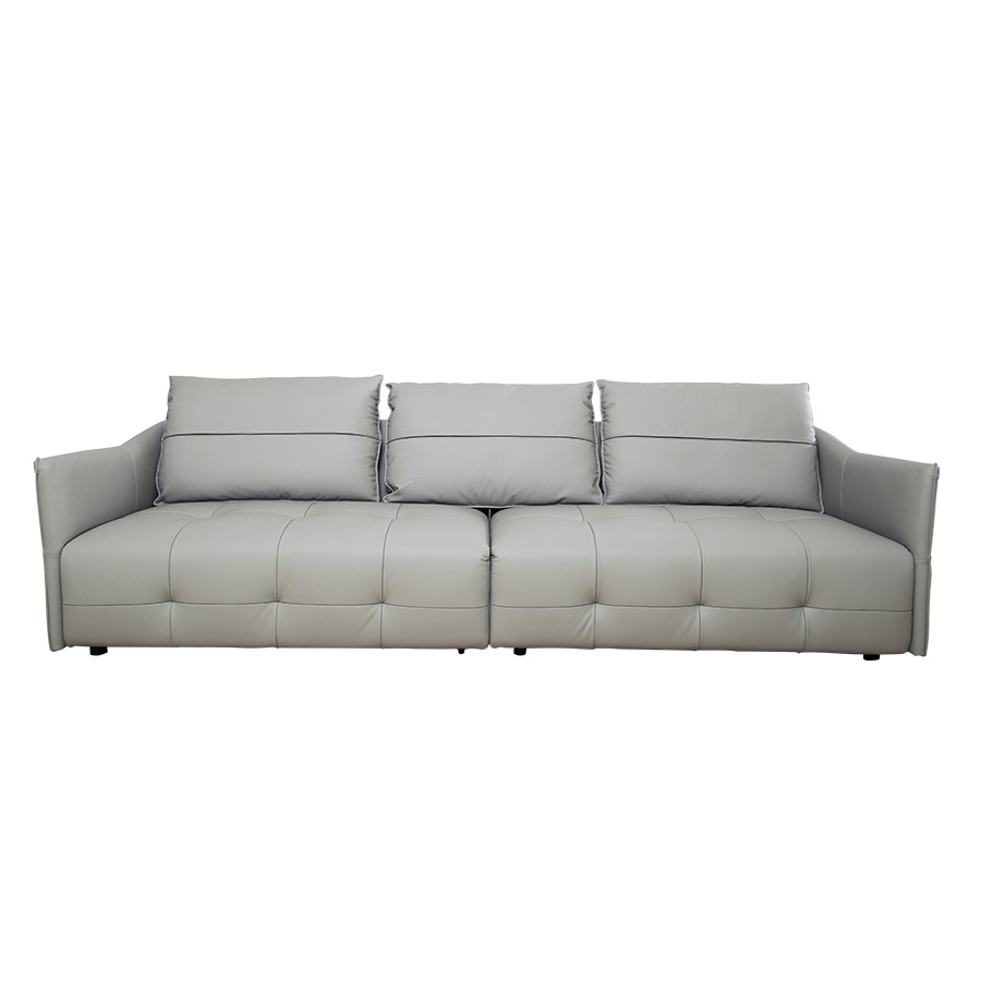一體成形的美背設計,完美的弧度和拉縫曲線展現出優雅的風格。這種設計不僅讓沙發無需依賴牆壁,克服了空間限制,也為客廳或餐廳提供理想的軟性隔斷區域。無論是用於放鬆身心,還是用於與親友共聚,這款沙發都將成為您空間中的亮點,展現出屋主對於品質生活的追求和享受。