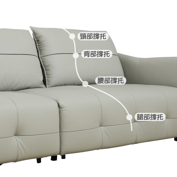 柔軟的托背感貼合身形精心設計的人體工學巧思,讓您感受到極致撐托,柔軟的托背感舒適且完美的貼合身形。飽滿的靠墊和厚實的坐墊提供全方位的包覆支撐,從頸部、背部、腰部、臀部到腿部,讓您放鬆身心,釋放背部壓力,徹底解除一天的勞累。