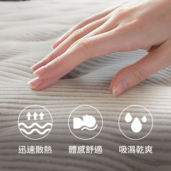 結合創新材質與極致舒適設計,採用晶透高分子矽膠作為核心填充材料,這款床墊擁有卓越的柔軟支撐性與彈性,能夠根據人體曲線提供均勻支撐,減少壓力點,有助於促進深度睡眠。矽膠材料本身的透氣性和散熱性極佳,能保持睡眠時的涼爽與乾爽,能長時間保持穩定的舒適效果。