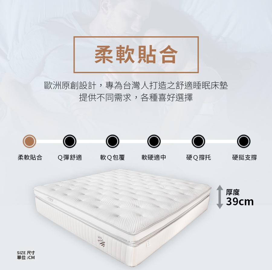 加厚的多層次的設計,提供更多元的呵護體驗,飽滿充盈的支撐,自然更貼合身體曲線,為舒適睡眠加成。