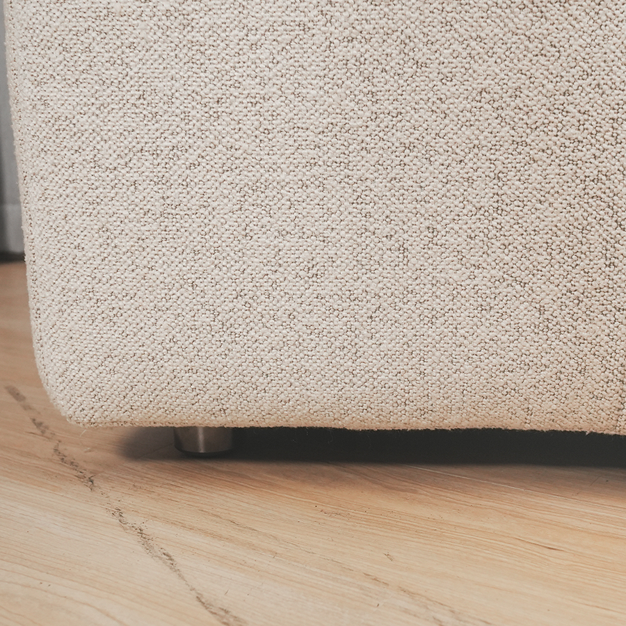 整體5公分高的五金腳設計,為沙發帶來輕盈的懸浮感和穩固支撐力。金屬腳選用高品質材質,經過精細拋光處理,不僅耐用耐磨,還增添了現代時尚的點綴。