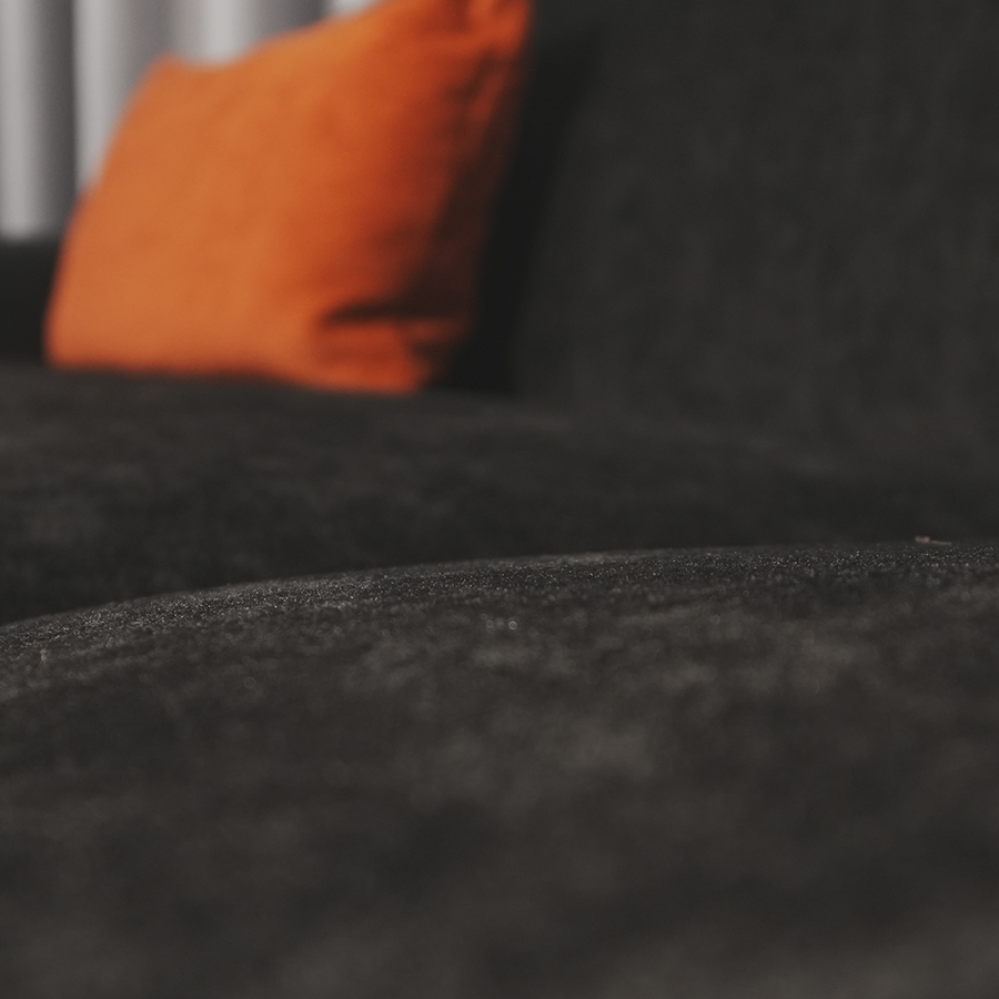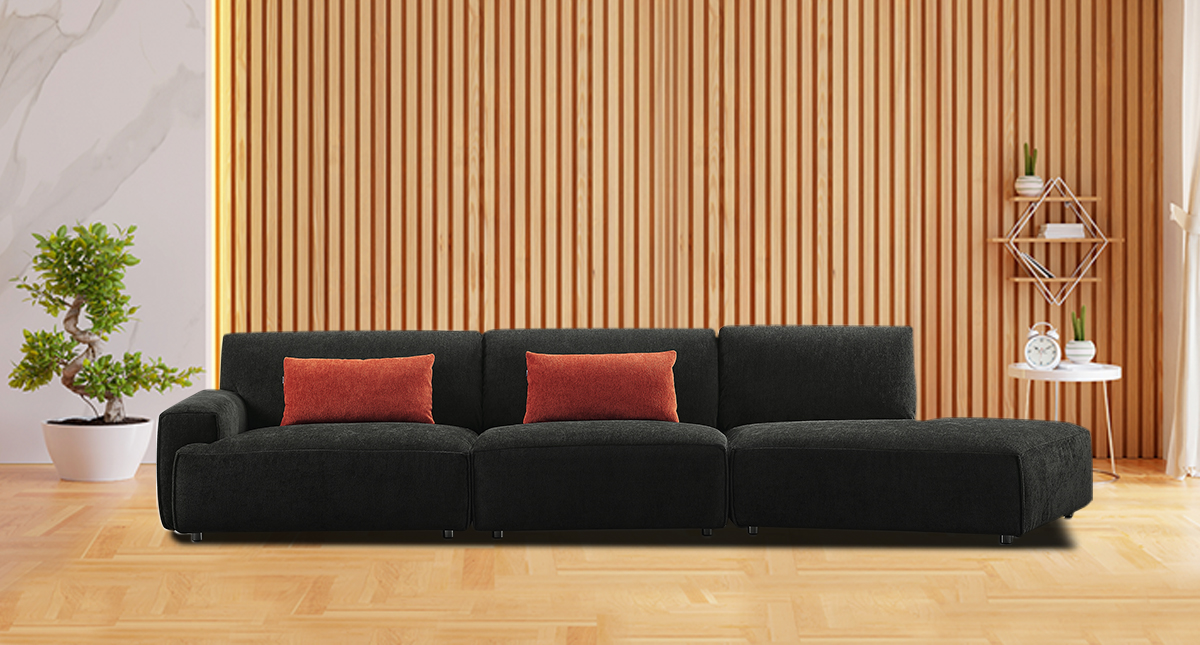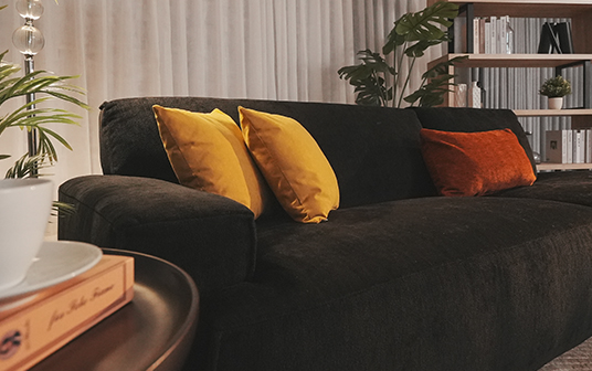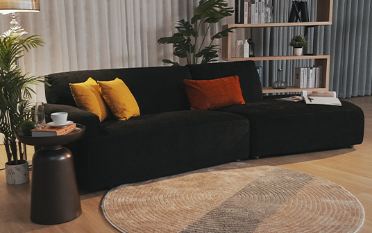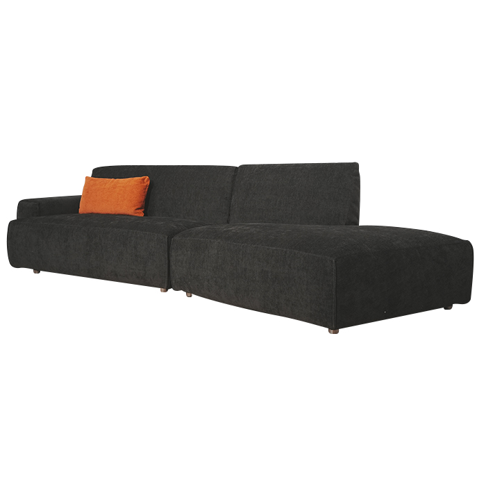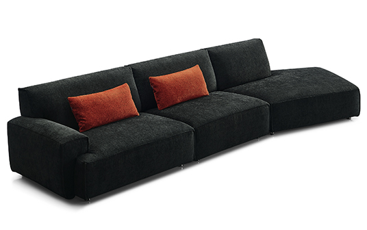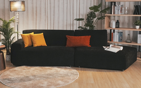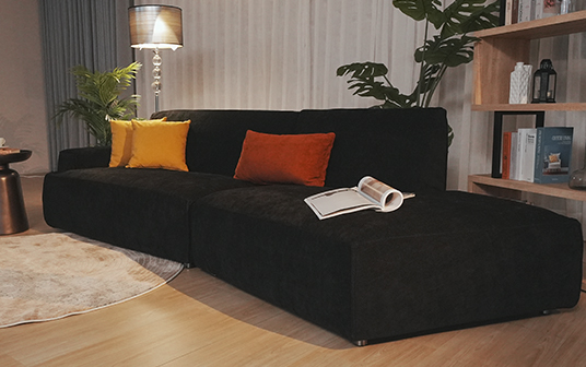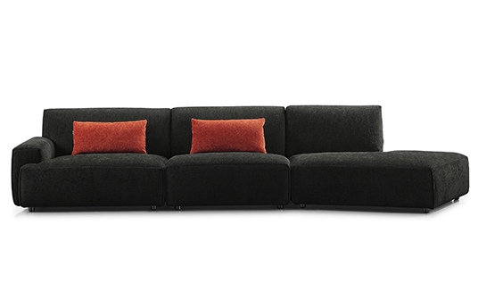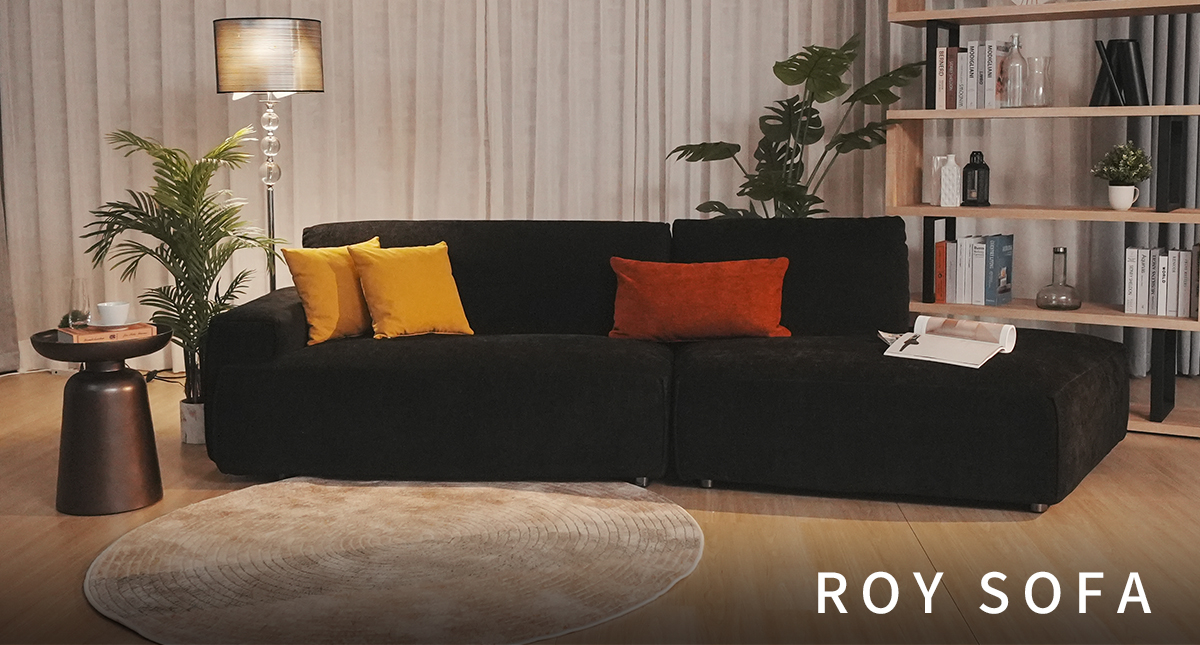 羅伊沙發以柔和曲線和立體造型展現義式精緻美學,模組化設計搭配黑橙配色,彰顯獨特生活格調,提升客廳空間層次感。