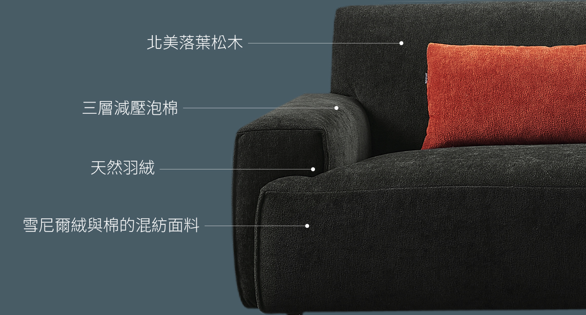 設計體現低調奢華的現代氣息,使沙發與各種家居風格輕鬆搭配。其完美融合了美觀與實用性,為家打造一個既舒適又高雅的居家空間。