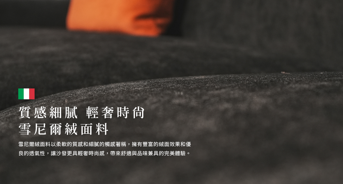 質感柔軟細膩,觸感如絲絨般舒適,為肌膚帶來溫柔的呵護。豐富的絨面讓沙發在光影下展現獨特的光澤感,增添視覺層次感。雪尼爾絨具備優良的透氣性,使長時間坐臥依然保持清爽舒適,同時耐磨性佳,經久耐用。