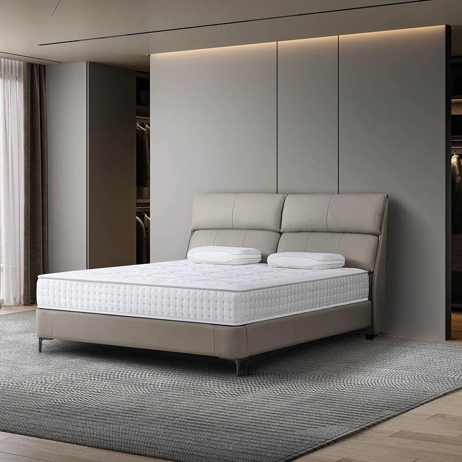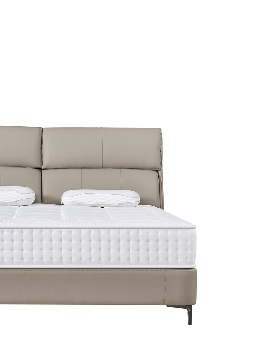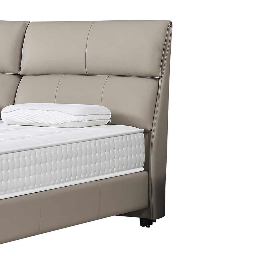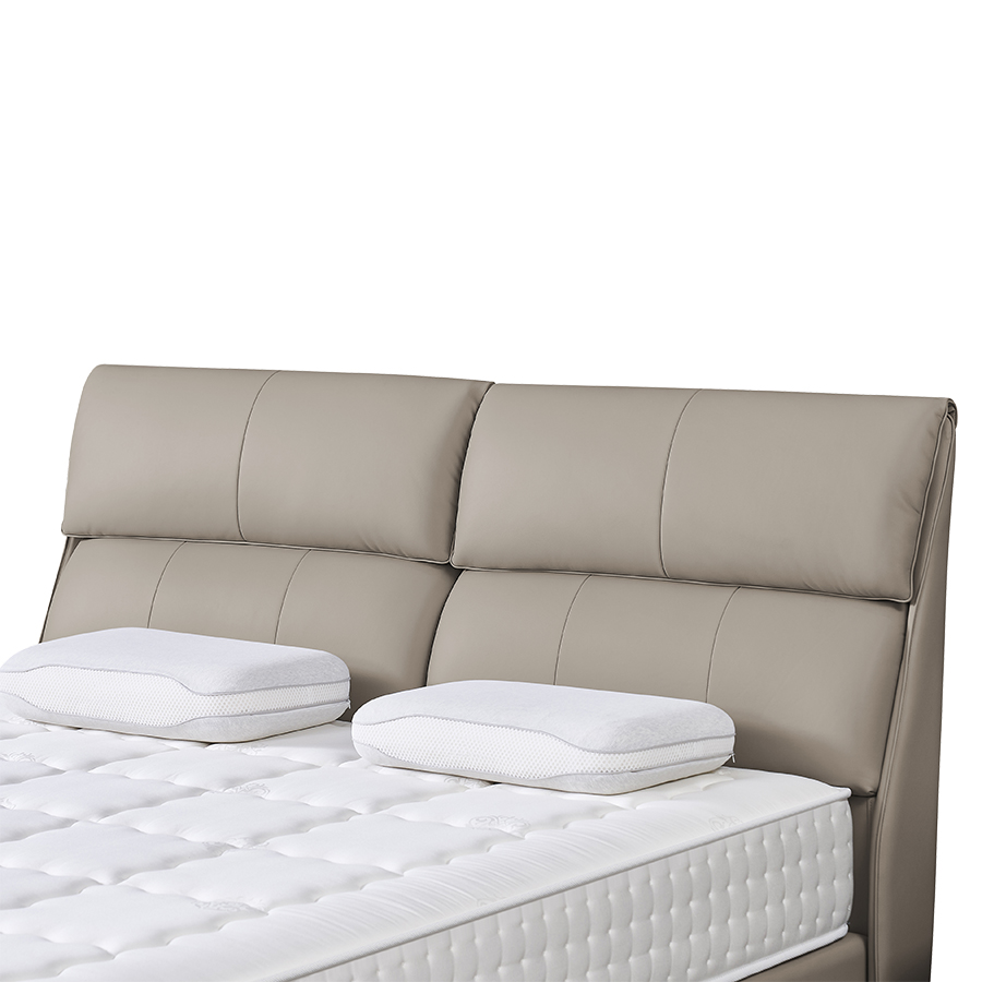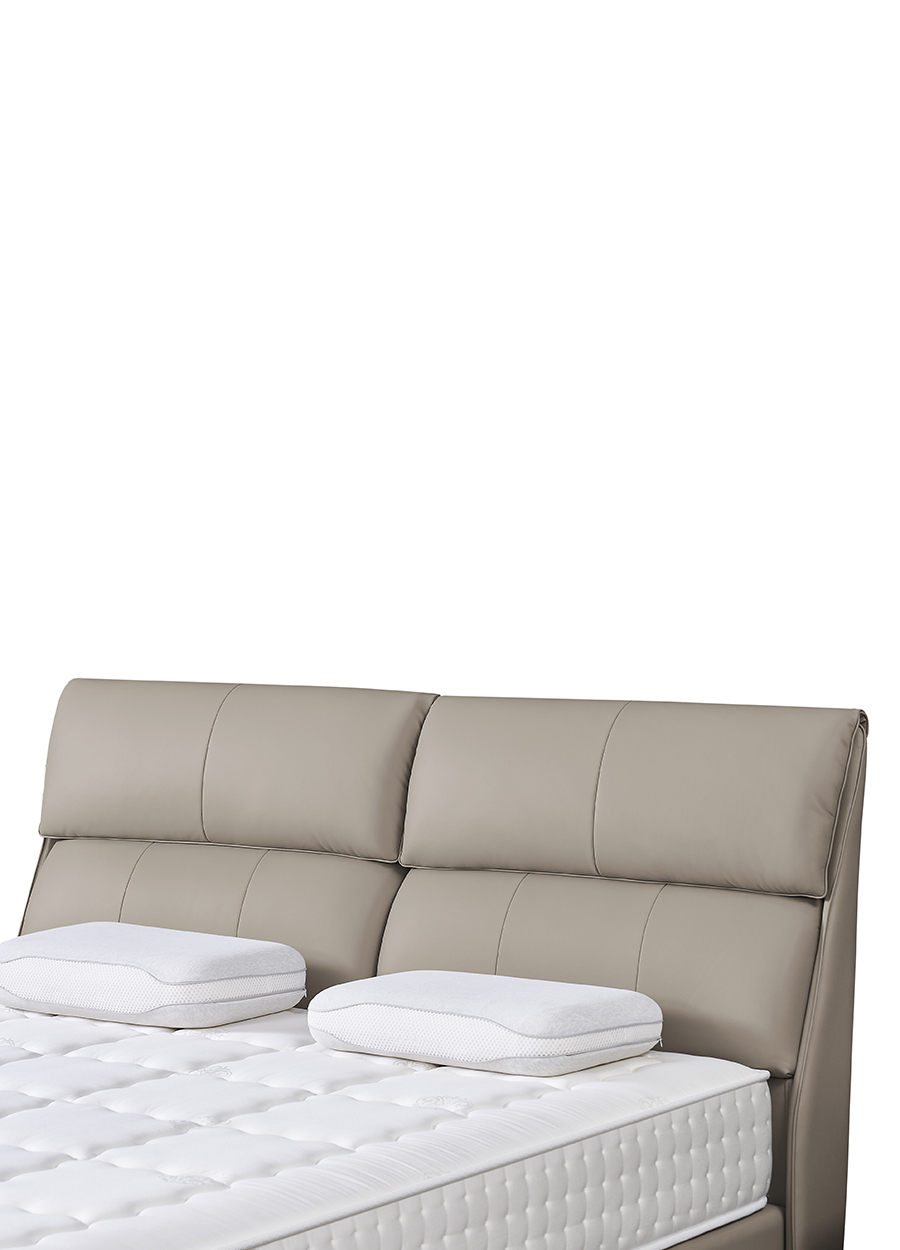 床頭的精緻斜背設計勾勒出獨特的造型,展現低調的質感,搭配頂級皮革與用料,提供舒適撐托感,打造全方位的享受。
