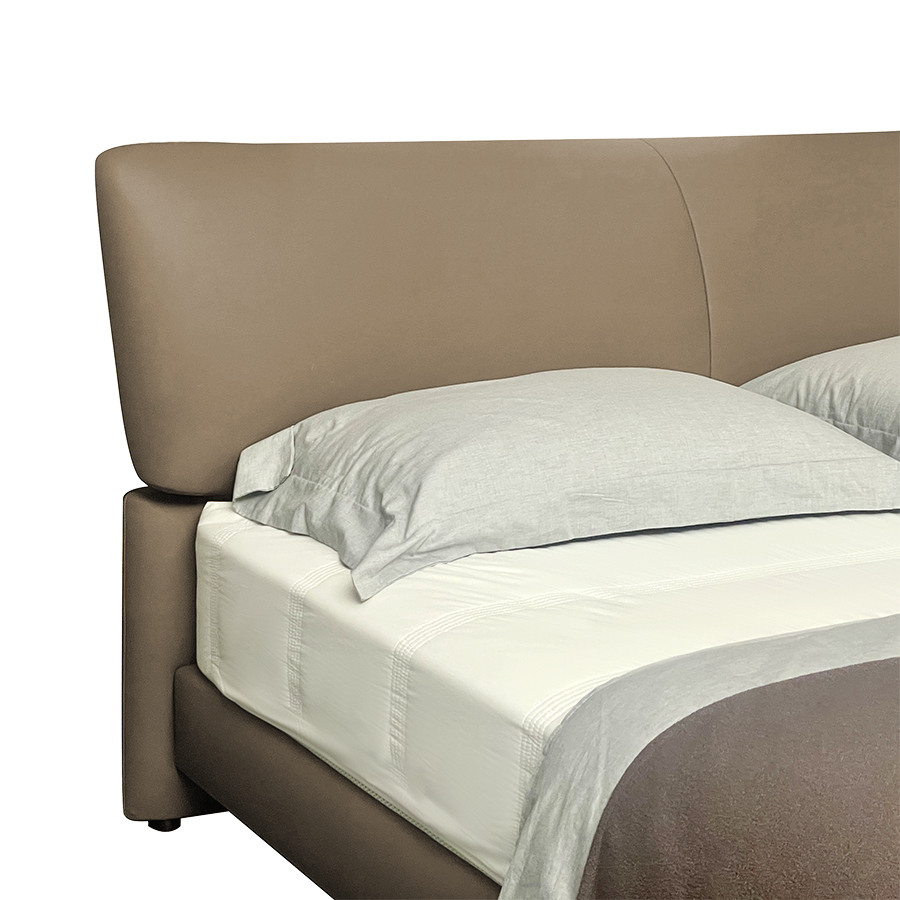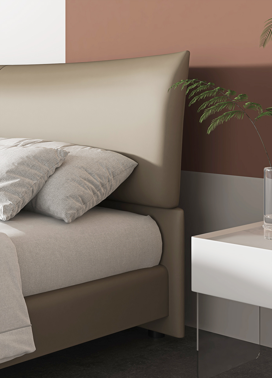 以簡約線型為靈感,床頭的分段設計結合圓弧造型,體現簡約而不失高級感的義大利美學。
