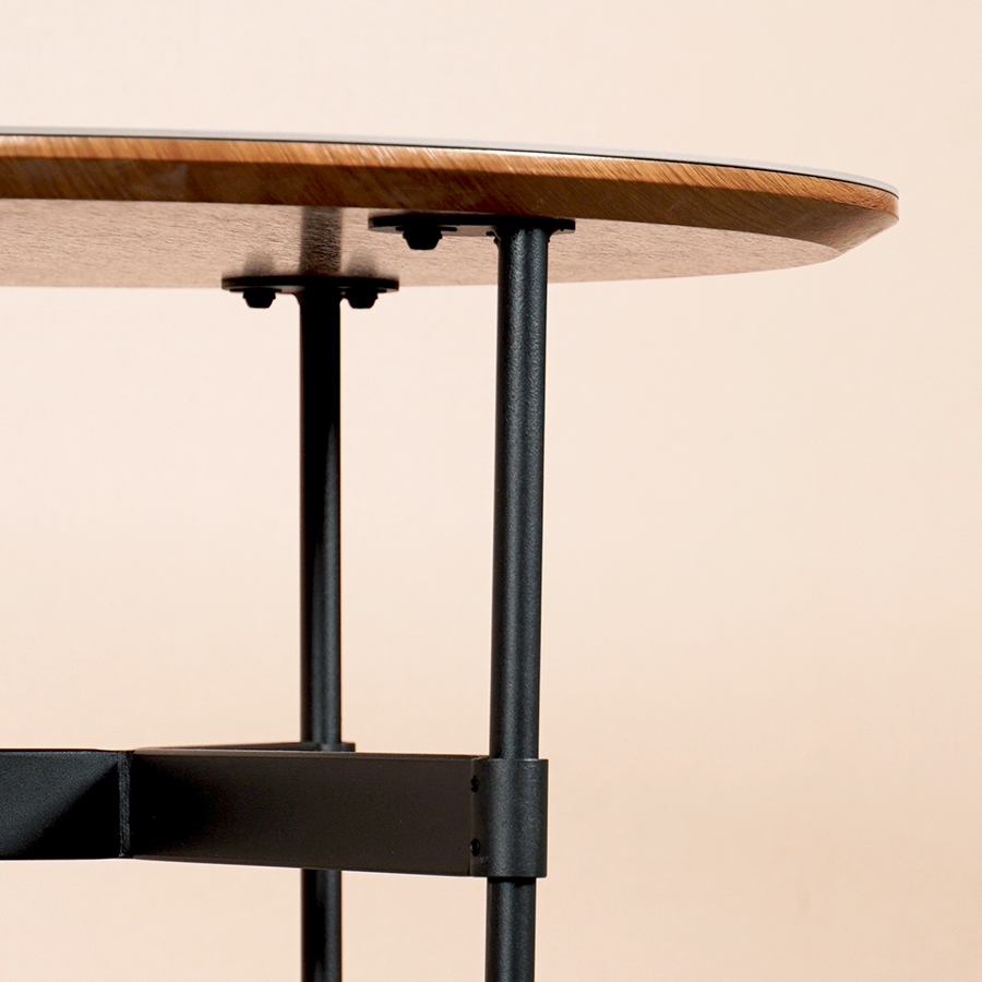 拋光黃銅金屬腳和木紋托盤,增添造型感,