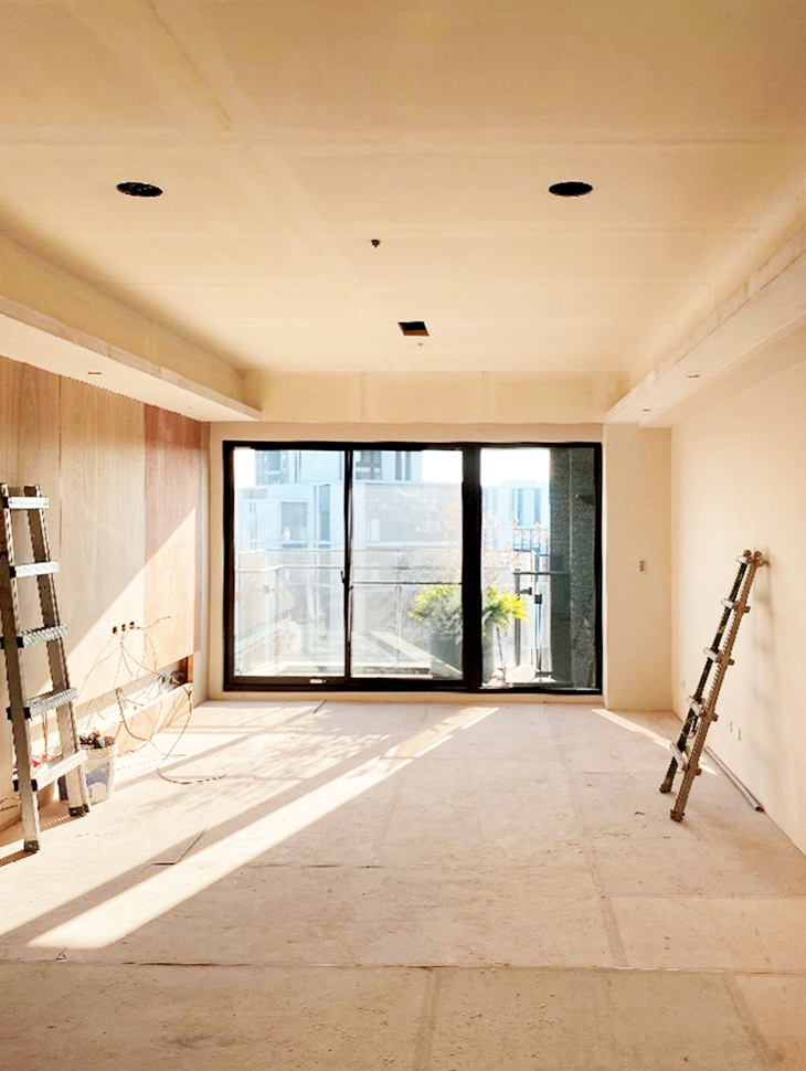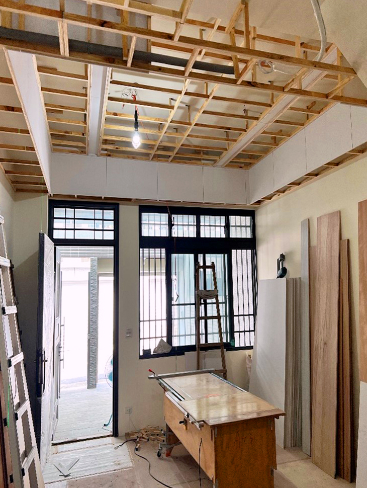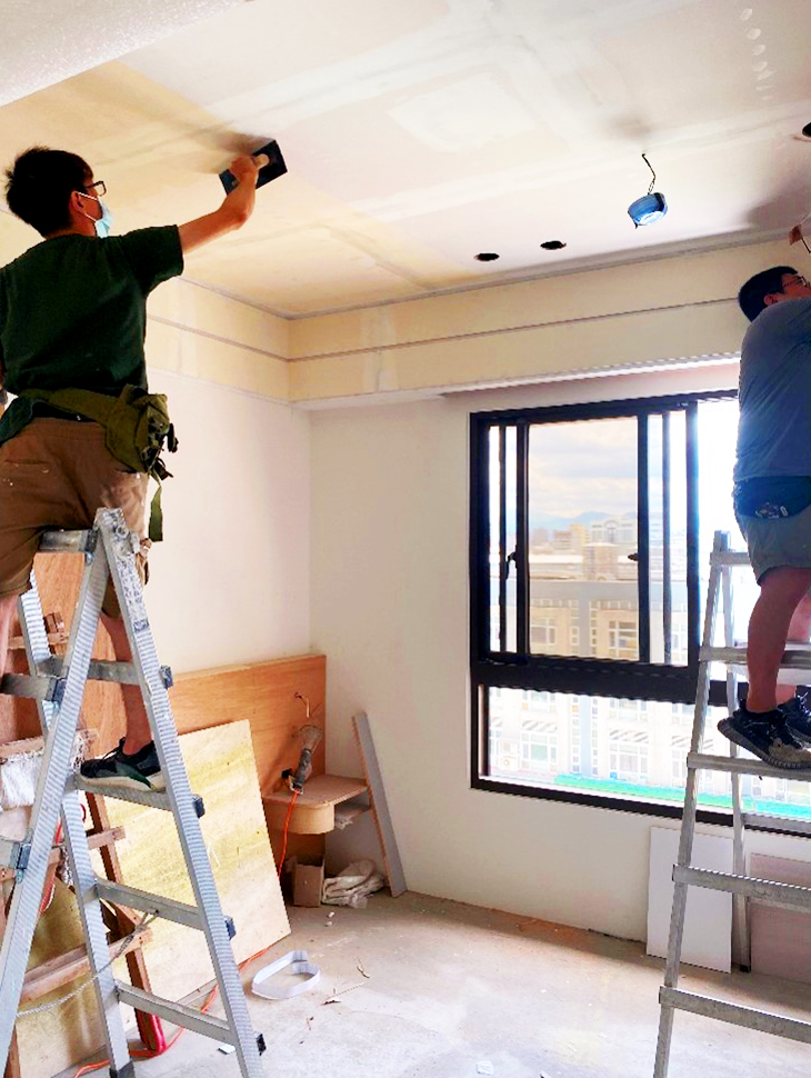 矽酸鈣板施作、批土、研磨補土、噴漆上色等